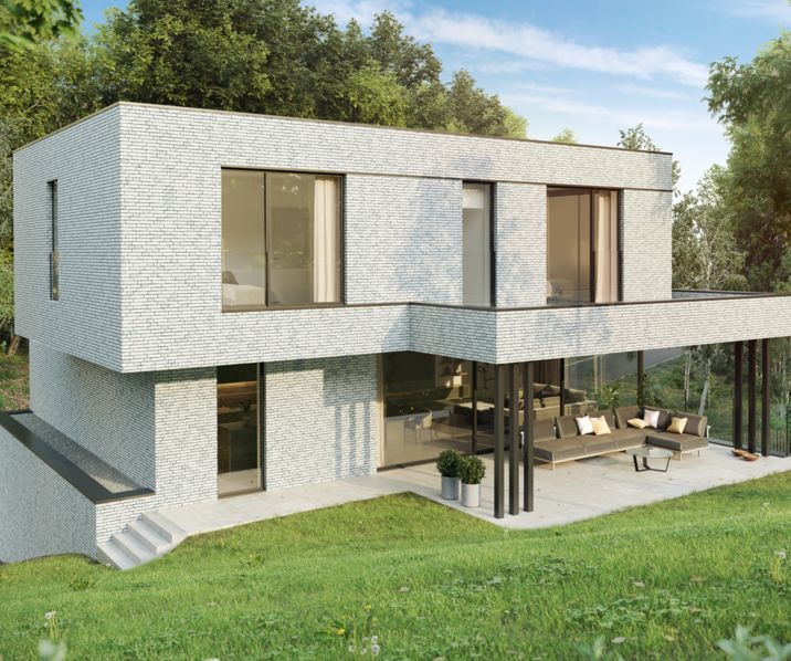 The property will be finished using high-quality contemporary materials (underfloor heating, parquet flooring, glass door to the living area, interior doors of 2.80 m height, custom-made bathroom furniture, recessed spotlights, landscaped terrace and driveway, heat pump, solar panels, D ventilation system, etc.).