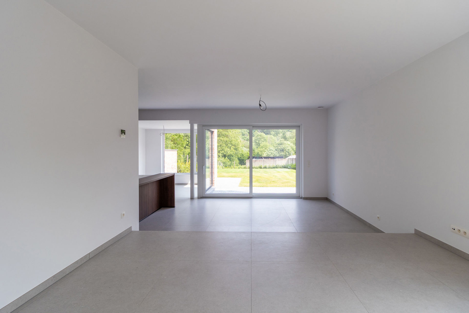 Huldenberg (Loonbeek): Very spacious newly built semi-detached house (253 m² built surface) offering a total of 4 to 5 bedrooms and 1 to 2 office spaces, situated on a beautiful plot of 671 m² in a rural setting, with open green views from the garden side (south-east facing).