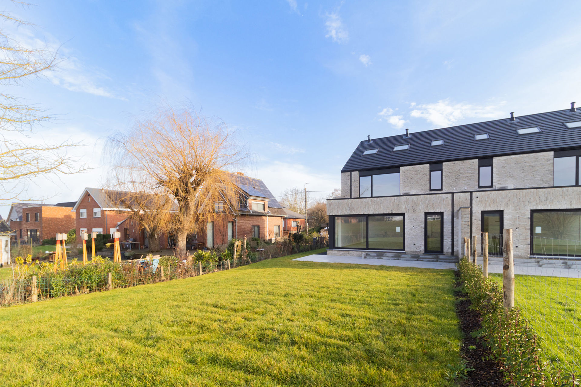 The house is very completely finished and the aim was to achieve a very energy-efficient condition (heat pump, underfloor heating, 12 solar panels, E-level < E30). The house is also delivered fully painted and is therefore immediately ready to move in.