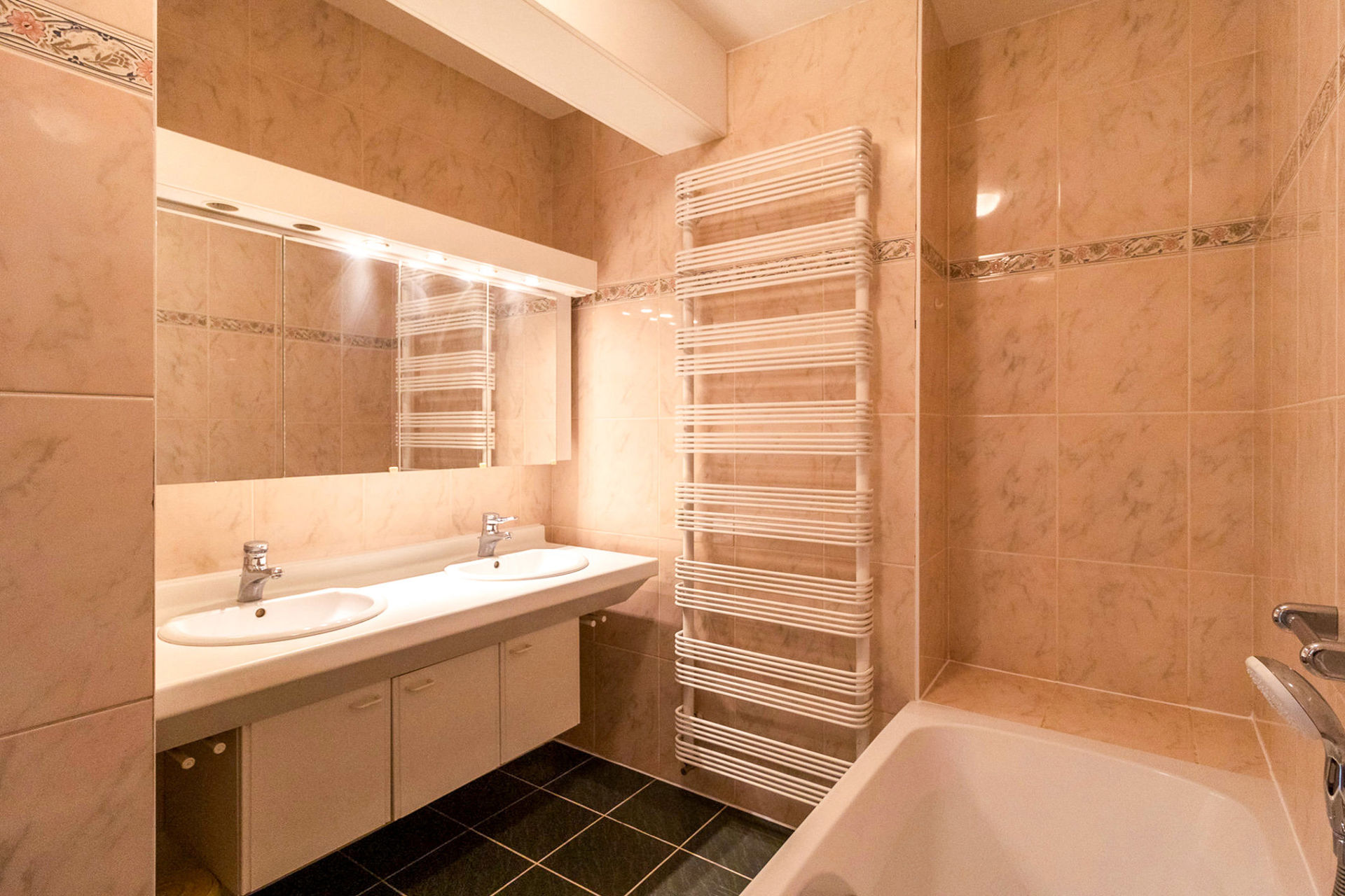 This apartment of approximately 160 m² comprises a large entrance hall with cloakroom, a living and dining area with 2 terraces (south-west orientation), a fully equipped kitchen with terrace, a bathroom with bathtub, a shower room, 2 separate toilets, 3 bedrooms, a dressing room, a storage room, a closed garage box, a large cellar and private parking in front of the building.