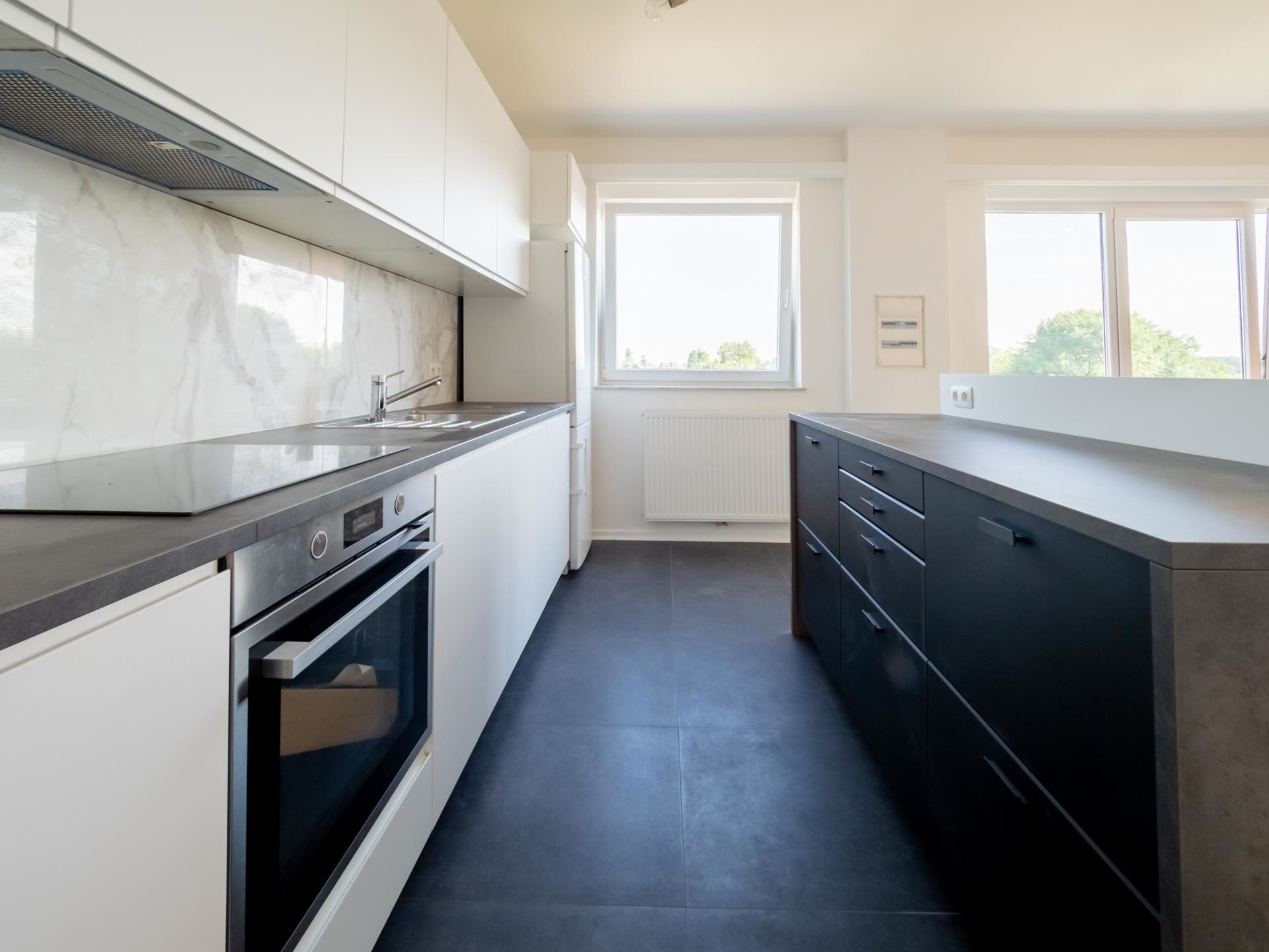 *** OPTION *** Kraainem: Completely renovated apartment located on the 3rd floor of a small condominium without lift close to public transport and shops. The apartment consists of an entrance hall with toilet and laundry room, a large living room with fully equipped American kitchen (45m2). Two bedrooms (17 & 12m2) and a bathroom. 6m2 south facing terrace. Cellar 3m2. Provisions for charges (heating & water): €125/month. To see without delay!!!!