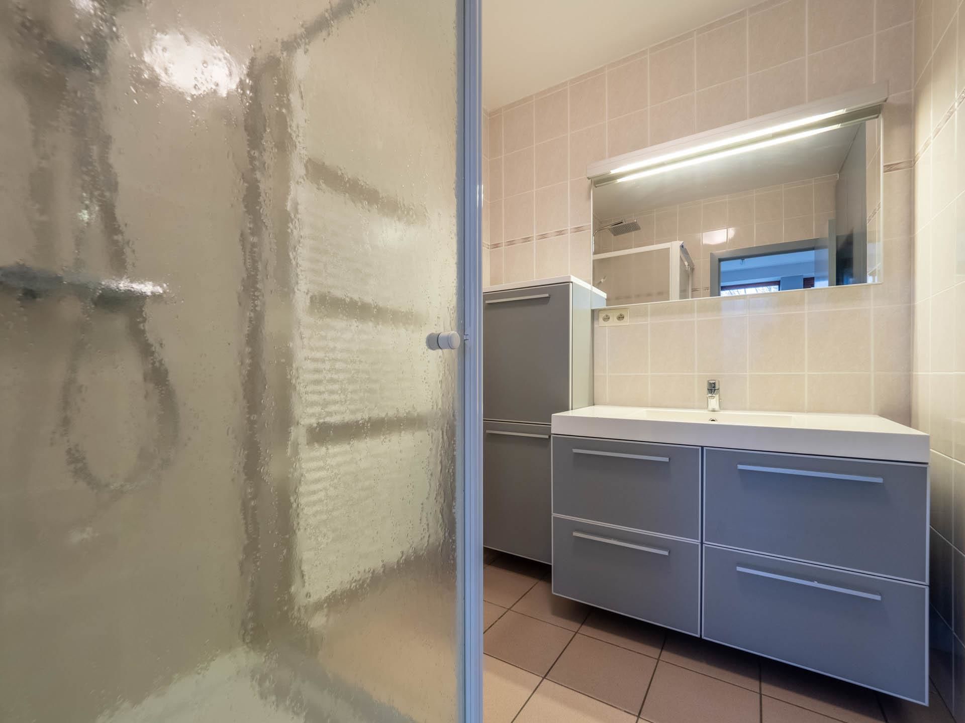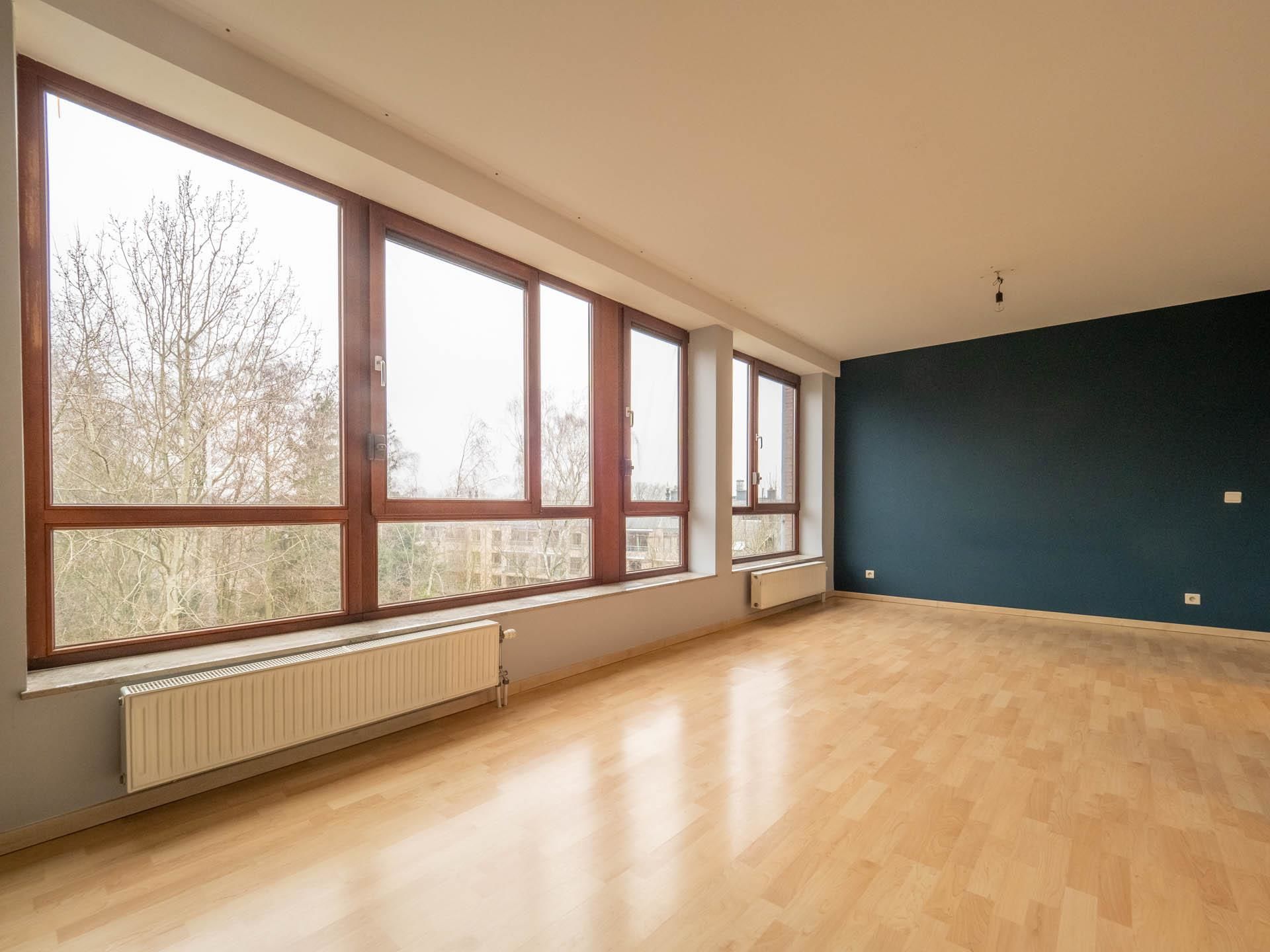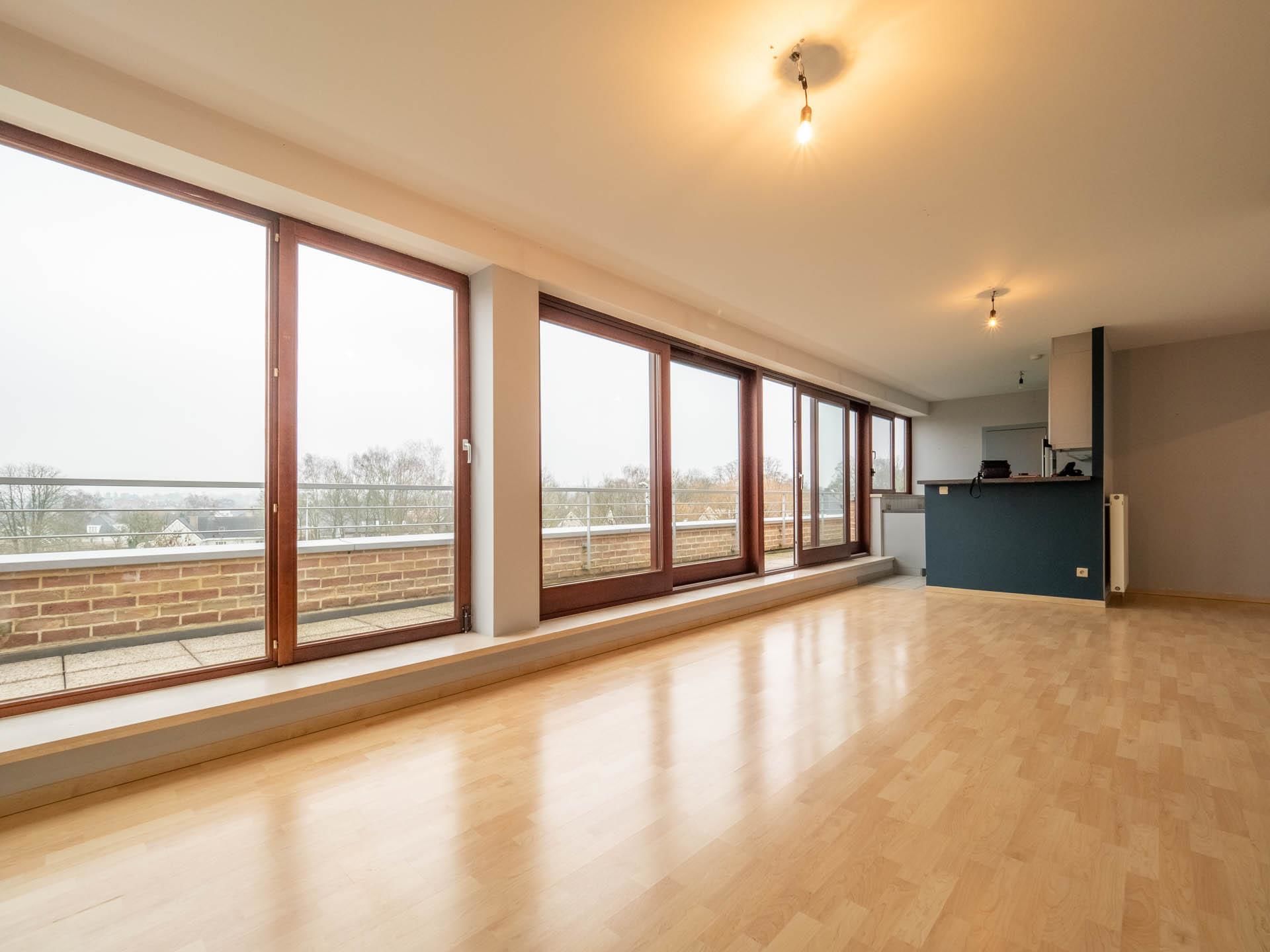The apartment consists of an entrance hall with toilet and cloakroom, a bright living room (30m2) giving access to the East facing terrace (18m2) overlooking the football club of Stockel, a super-equipped kitchen (8m2), a laundry room, a large room separable and ideal for office space (25m2), a shower room (5m2).