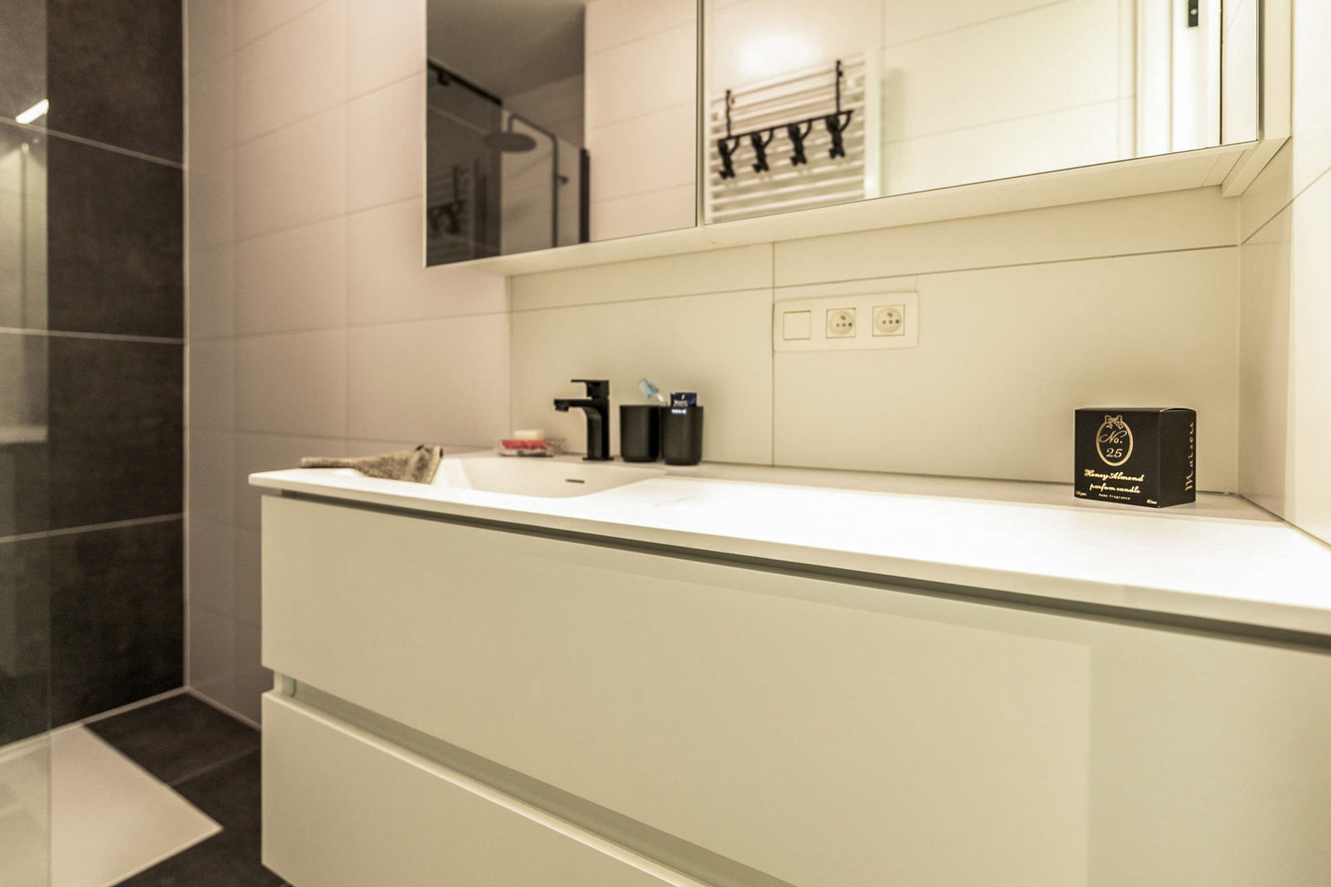 ZAVENTEM - Newly built apartment, located on the 3rd floor of a building with elevator. The apartment has a pleasant living / dining room with an open kitchen, a laundry room, a separate toilet, a shower room, 2 bedrooms, one with an office corner and fitted cupboards. Spacious terrace. Underground parking space included. Ideally located near shops, public transport and roads. Recommended !!!