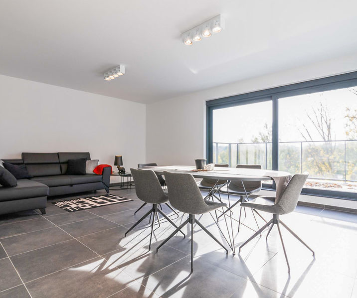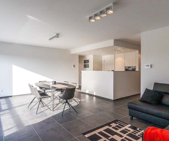 ZAVENTEM - Newly built apartment, located on the 3rd floor of a building with elevator. The apartment has a pleasant living / dining room with an open kitchen, a laundry room, a separate toilet, a shower room, 2 bedrooms, one with an office corner and fitted cupboards. Spacious terrace. Underground parking space included. Ideally located near shops, public transport and roads. Recommended !!!