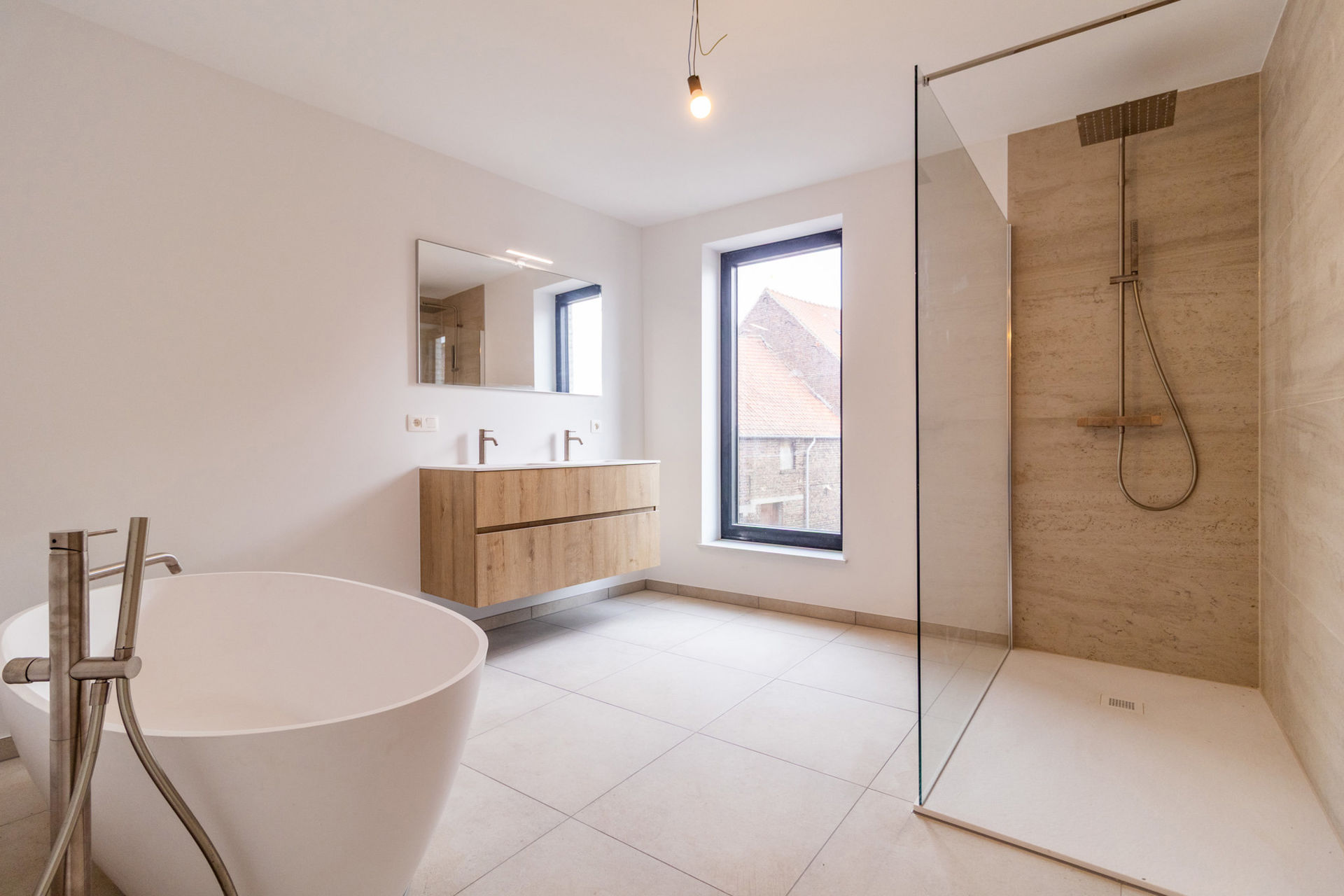 Nossegem: Spacious (225 m²) newly built semi-detached house with 5 bedrooms and 2 bathrooms, located on a beautiful and well-situated plot of 3a 26ca, and arranged as follows: