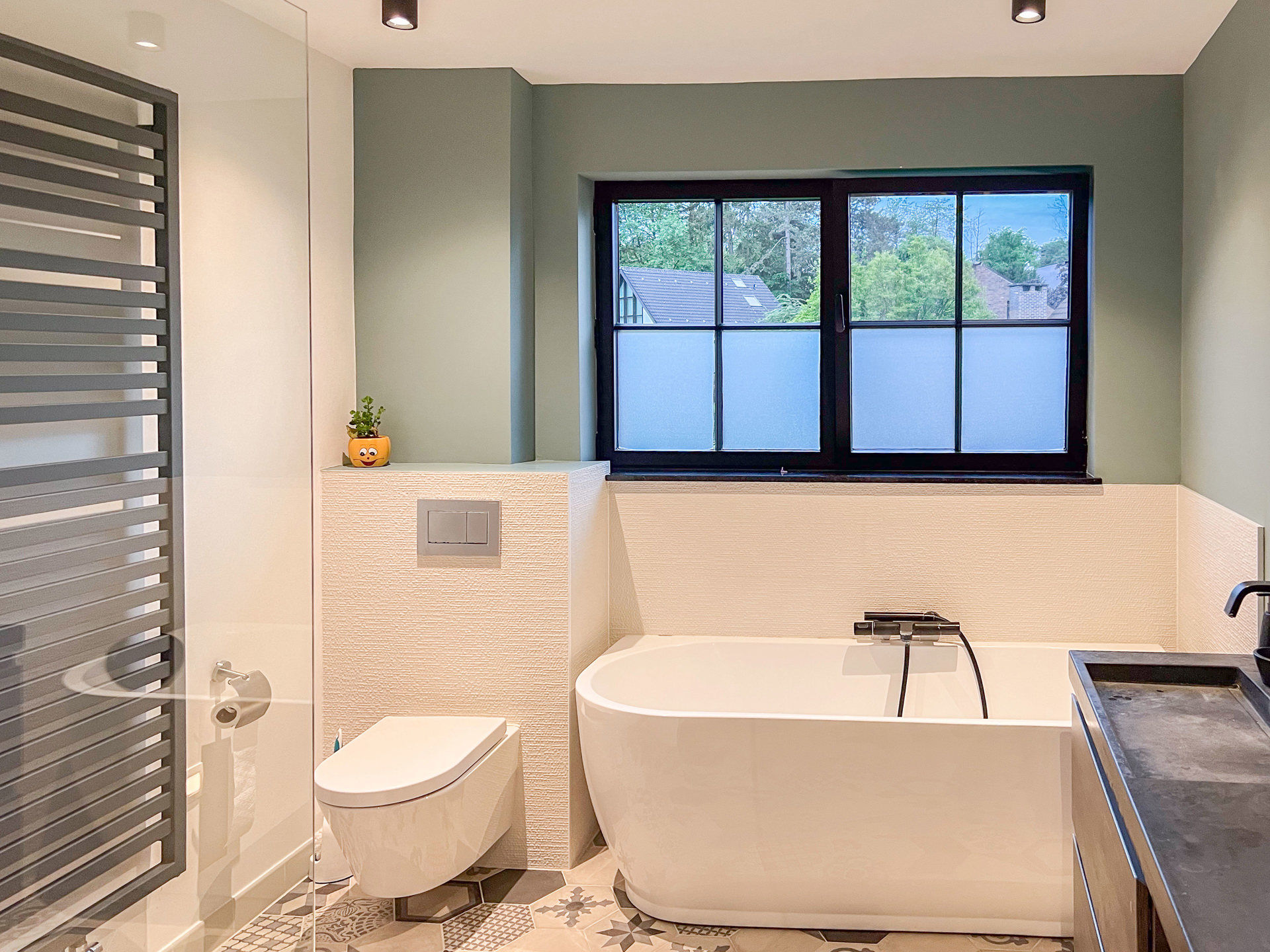 The second floor features three generous bedrooms, each with plenty of natural light and storage space. The modern bathroom is equipped with both a bathtub and a walk-in shower Under the roof, there is an additional, very spacious bedroom with an ensuite shower room.