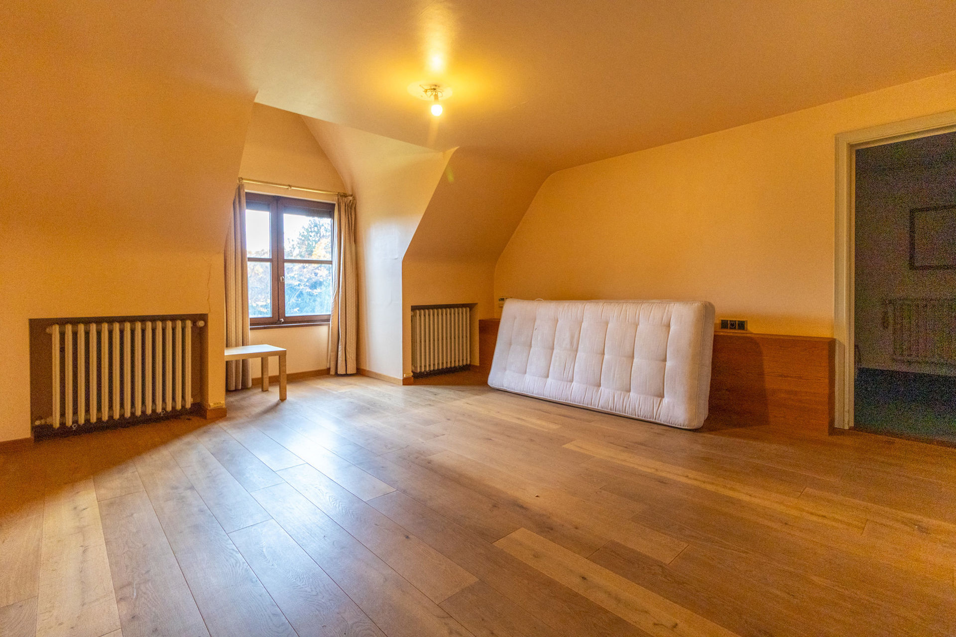 Upstairs are five bedrooms, including three with private bathrooms, offering comfort and privacy for a large family or guests. The large attic provides additional storage or conversion potential.