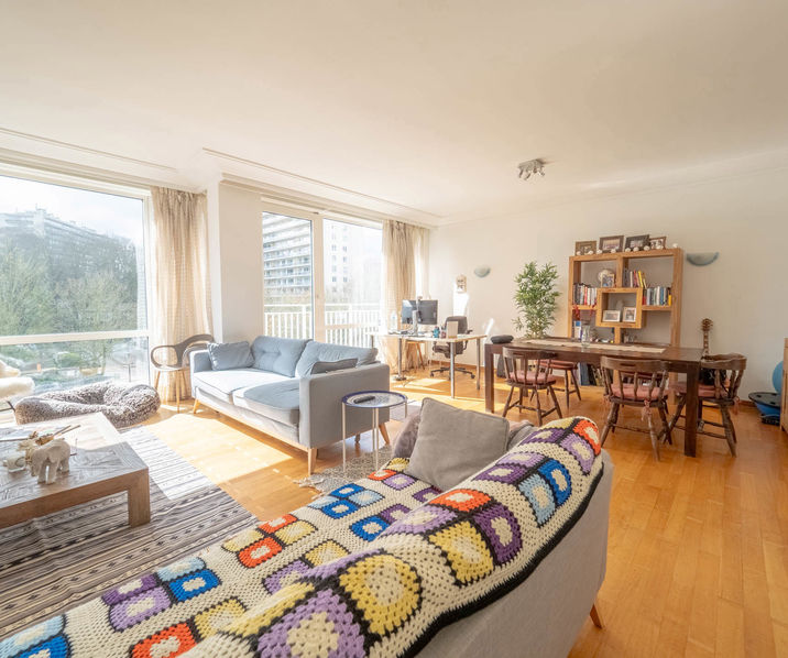 *** OPTION *** WOLUWE-SAINT-LAMBERT : Magnifique appartement d'une superficie habitable de 120 m2, idéalement situé à coté du métro Roodebeek et du Woluwe Shopping Center. L'appartement se compose d'un hall d'entrée avec wc et vestiaire (10m2), un lumineux living/salle à manger (40m2) donnant accès à une terrasse orientée Sud (6m2), une cuisine super-équipée (8m2) avec un petit balcon (2m2), un hall de nuit avec wc (6m2), une salle de bain avec espace buanderie (5m2) et 2 chambres (15 & 12m2). Cave (6m2). Provision pour charges communes et chauffage (195?). Porte blindée, double vitrage, ... A voir sans tarder !!!