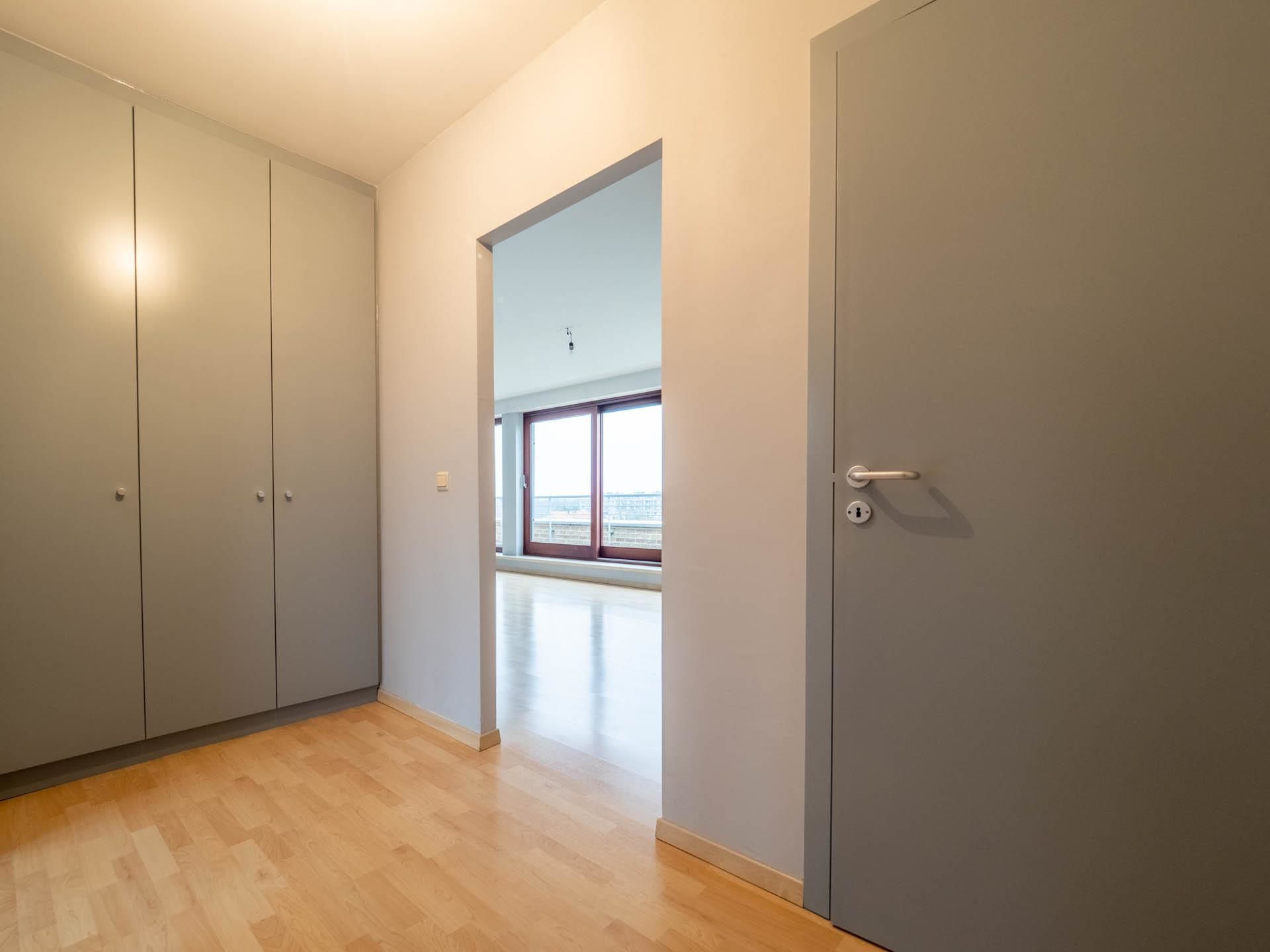 L'appartement se compose d'un hall d'entrée avec wc et vestiaire, un lumineux living (30m2) donnant accès à la terrasse exposée plein Est (18m2) vue sur le football club de Stockel, une cuisine super-équipée (8m2), une buanderie, une grande chambre séparable et idéale pour espace bureau (25m2), une salle de douche (5m2) .