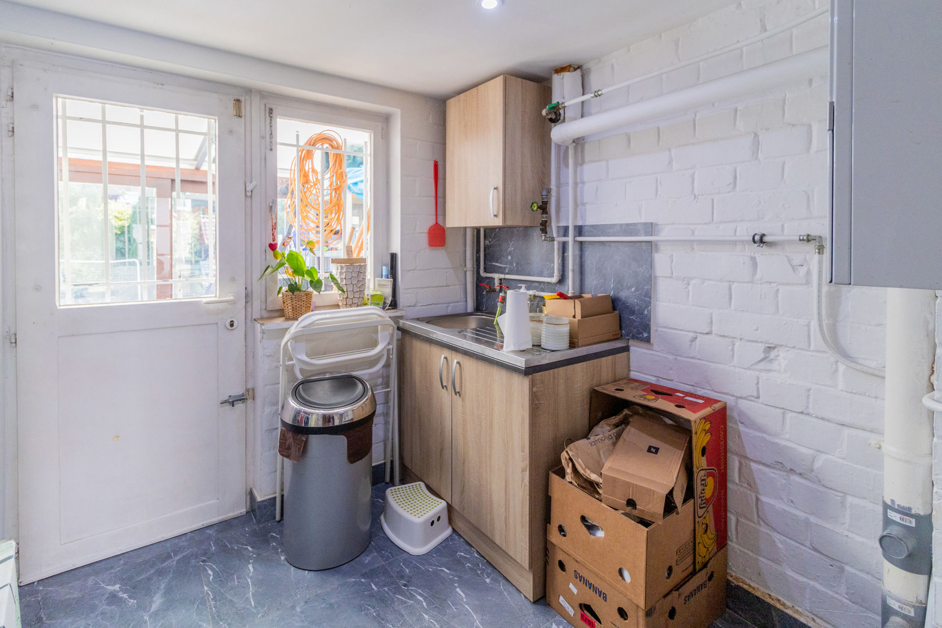 Au rez-de-chaussée : un hall d'entrée spacieux avec un WC séparé et un espace de rangement sous l'escalier, une buanderie/local technique séparé (avec une chaudière au gaz récemment remplacée), une véranda, une grande terrasse neuve et un joli jardin. Il y a également un garage avec un espace de rangement supplémentaire et une porte sectionnelle électrique récente. Une place de parking supplémentaire est disponible à l’avant de la maison.