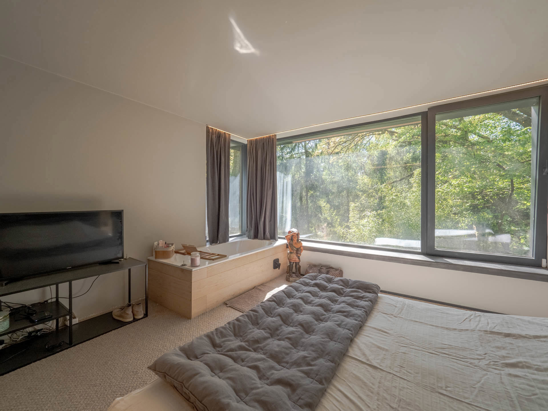 Chaumont - Gistoux : Splendide villa d'architecte construite en 2021 (225m²) nichée dans un écrin de verdure (1140 m²). Elle se compose d'un magnifique salon/salle à manger avec cuisine américaine, 4 chambres, un bureau et 2 salles de bain.