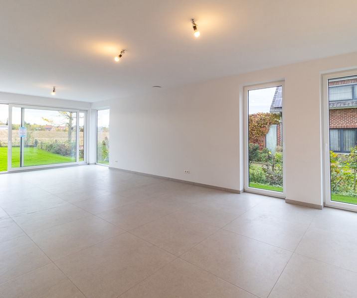 La maison est très complètement finie et l'objectif était d'obtenir une situation très économe en énergie (pompe à chaleur, chauffage au sol, 12 panneaux solaires, niveau E < E30). La maison sera également livrée entièrement peinte et est donc immédiatement prête à emménager.