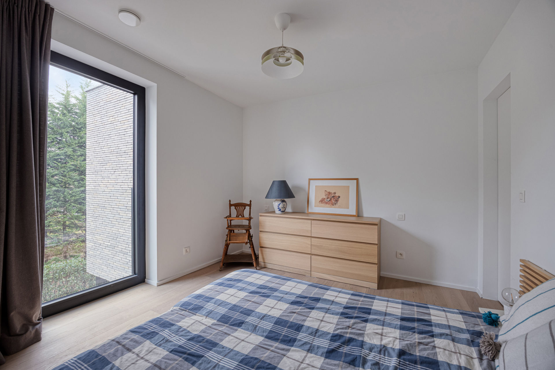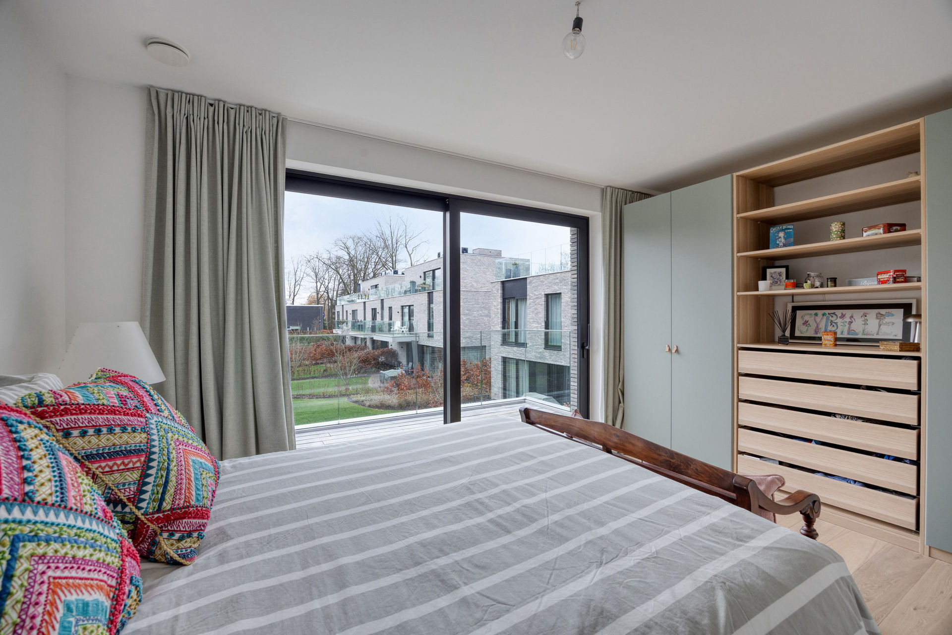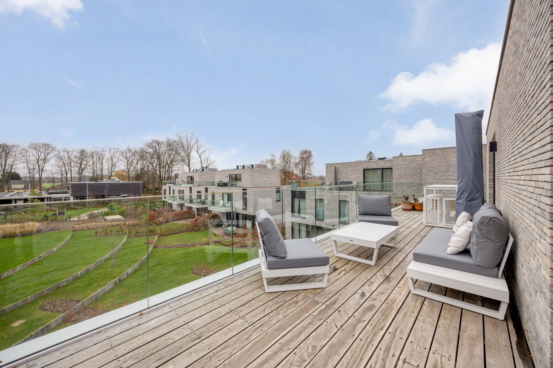 Accessible par ascenseur, l’appartement s’ouvre sur un spacieux et lumineux séjour avec salle à manger, en parfaite continuité avec une cuisine entièrement équipée. Depuis les espaces de vie, vous profitez d’une vue imprenable sur le parc paysager, conçu par le célèbre architecte paysagiste Wirtz, gage de prestige, de calme et d’intimité.