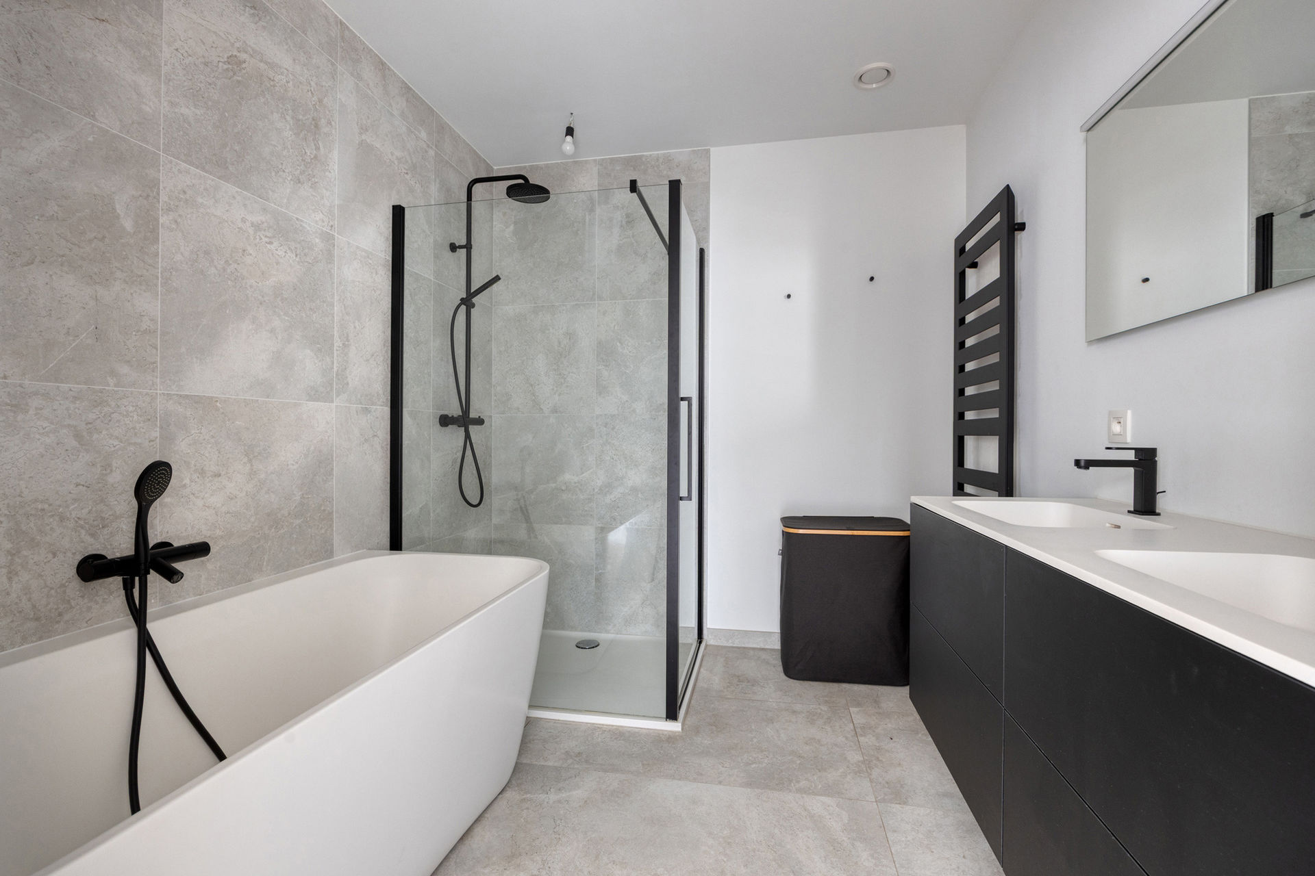 Le duplex comprend trois grandes chambres, dont une avec accès à une vaste terrasse privative. La salle de bains haut de gamme est entièrement aménagée et dispose d’une baignoire, d’une douche à l’italienne et d’une double vasque.