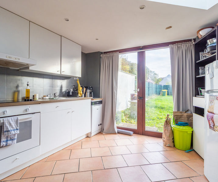 KORTENBERG - agréable maison 3 façades avec jardin , situé près du centre . La maison comprend un hall d'entrée avec wc, une salle de séjour spacieuse ( 36m² ) , suivie d'une cuisine équipée , deux grandes chambres à coucher ( 19 et 30m² ) dont une avec mezzanine ( 12m² ) , salle de bains spacieuse et une cave . Place de parking à côté de la maison . A saisir. Hautement recommandé !
