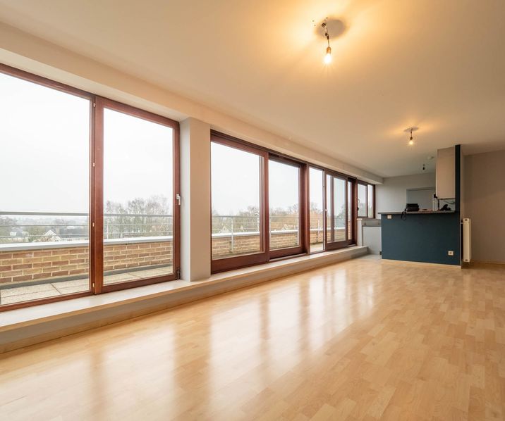 Het appartement bestaat uit een hal met toilet en garderobe, een lichte woonkamer (30m2) met toegang tot het op het oosten gelegen terras (18m2) met uitzicht op de voetbalclub van Stockel, een super uitgeruste keuken (8m2), een wasruimte, een grote slaapkamer die kan worden gescheiden en ideaal is voor kantoorruimte (25m2), een badkamer met douche (5m2).