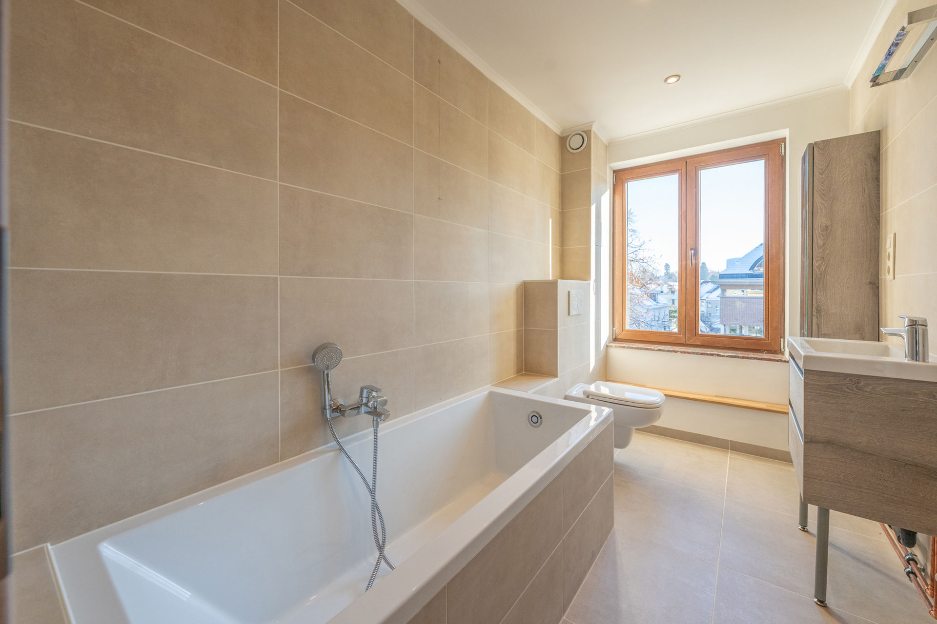 STOCKEL – Mooi nieuw appartement van 140 m², gelegen in een kleine mede-eigendom op enkele stappen van het Dumonplein, in een rustige en gegeerde omgeving.