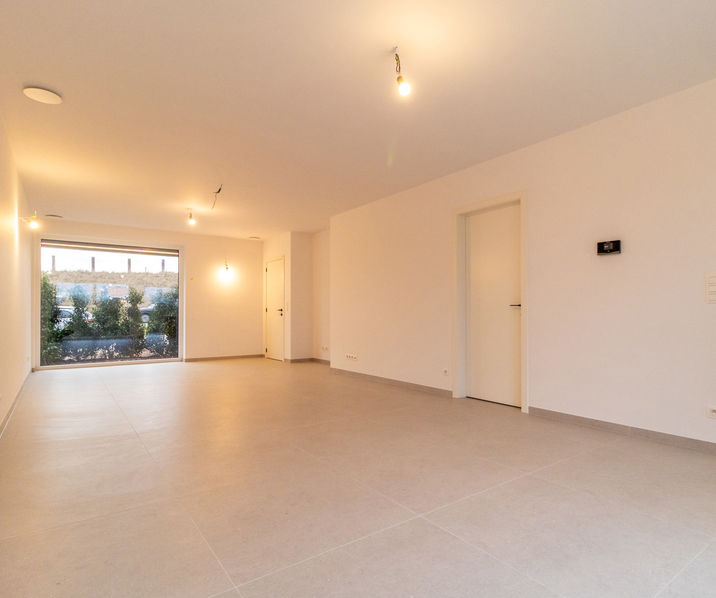 Op het gelijkvloers is de woning ingedeeld als volgt: een inkomhal met een apart WC-lokaal en ruimte voor een vestiaire, een mooie & ruime living/eetplaats (39 m²) met aansluitend een halfopen