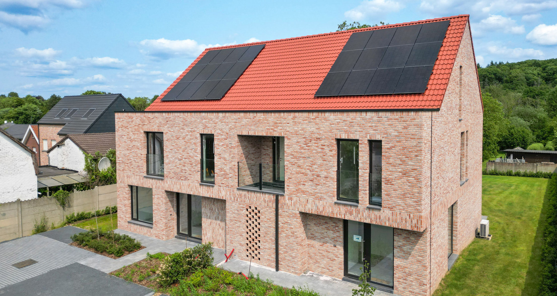 Huldenberg (Loonbeek): Zeer ruime nieuwbouw driegevel woning (253mē bebouwde oppervlakte) met in totaal 4/5 slaapkamers en 1/2 bureau(s), op een mooi perceel van 6a 71ca, landelijk gelegen, en langs de tuinzijde (zuid-oost georiënteerd) zicht op het groen. De woning is opgedeeld als volgt: