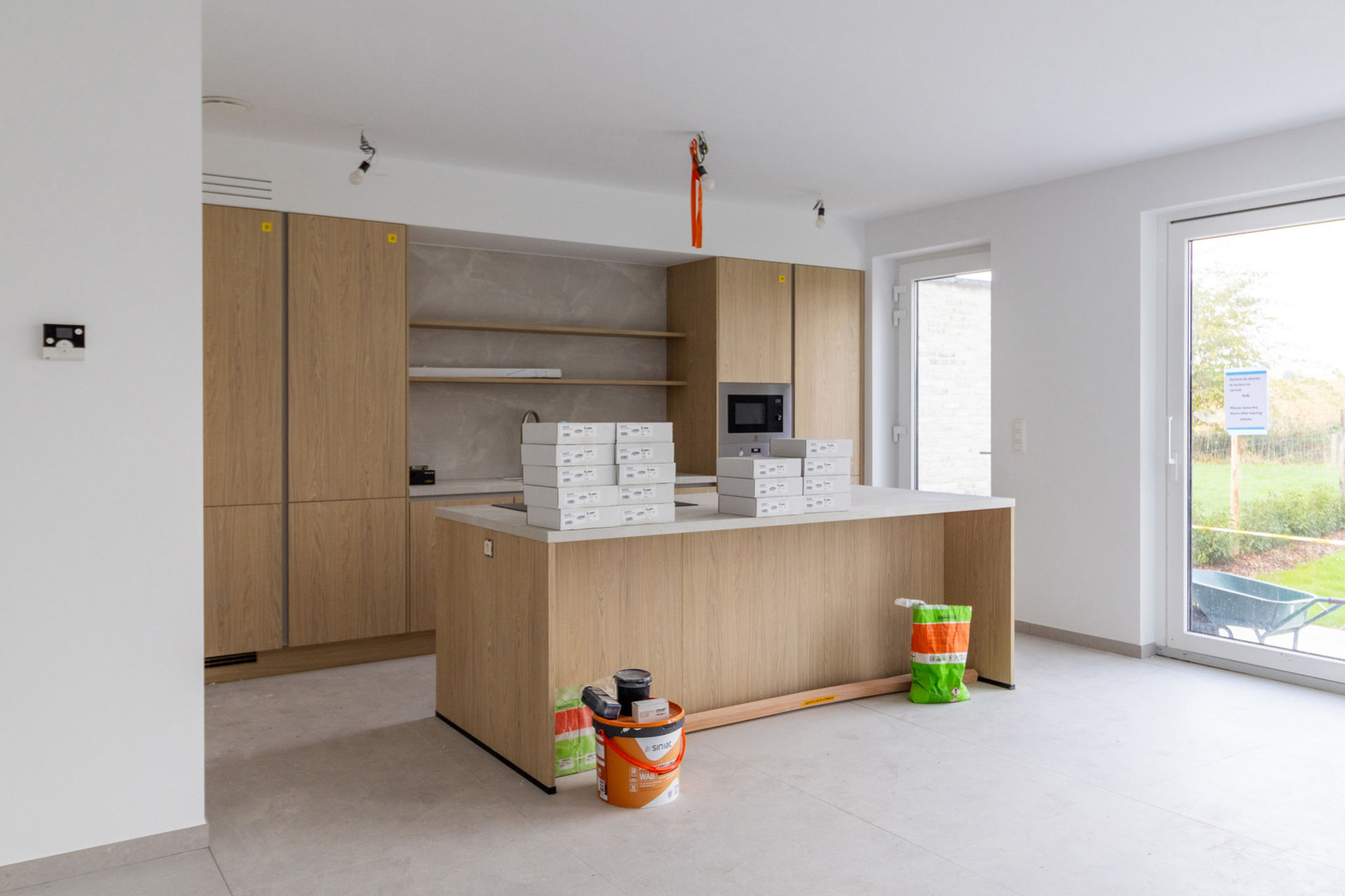 Op het gelijkvloers: een inkomhal/traphal met een apart wc-lokaal, een aparte bureaukamer (11m²), een grote & open living/eetplaats (45m²), een volledig ingerichte open keuken met eiland (12m²) en aansluitend een afgesloten berging (9m²). Op de 1ste verdieping: een nachthal/traphal, 4 ruime slaapkamers (18-14-12-12), een apart wc-lokaal en een grote badkamer (11m² bad, inloopdouche dubbele wastafel). Op de 2de verdieping (deels onder de dakhelling): de master bedroom (22m²) met aansluitend een ingerichte dressingkamer (11m²) en ensuite badkamer (8,5m² wc, douche, wastafel), een 2de slaapkamer/bureau (7,5m²). De woning is zeer volledig afgewerkt en er werd gestreefd naar een zeer energiezuinige toestand (warmtepomp, vloerverwarming, 12 zonnepanelen, E-peil < E30). De woning wordt bovendien volledig geschilderd opgeleverd en is dus meteen instapklaar. Verkoop onder BTW-stelsel (6% tarief mogelijk indien u voldoet aan de voorwaarden). De oplevering is voorzien einde zomer 2025.