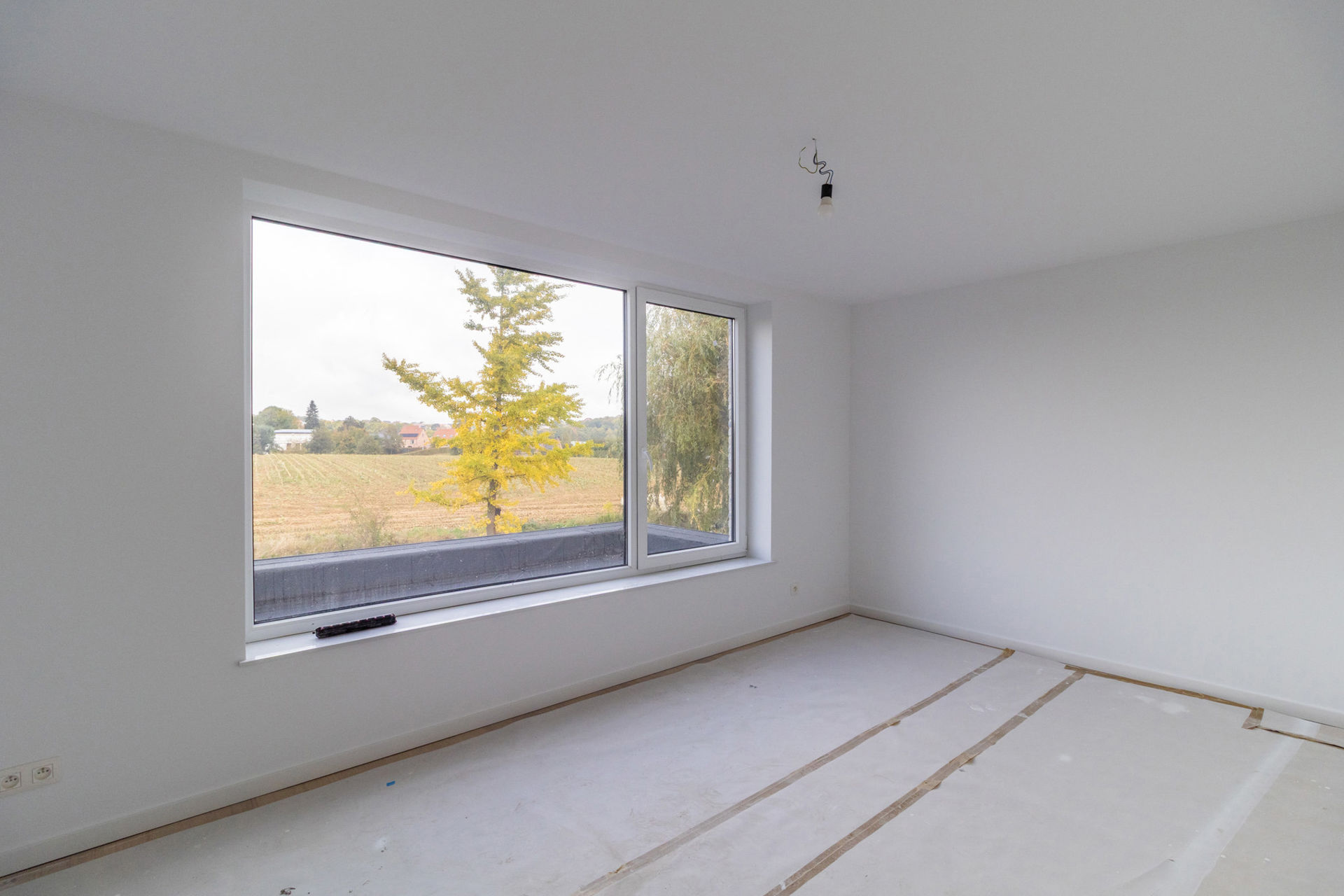 Zeer ruime nieuwbouw driegevel woning (263m² bebouwde oppervlakte) met in totaal 5/6 slaapkamers en 1/2 bureau(s), op een mooi perceel van 4a 33ca, gelegen in een kleine residentiële wijk met lokaal verkeer, en langs de tuinzijde zicht over de velden. De woning is opgedeeld als volgt: