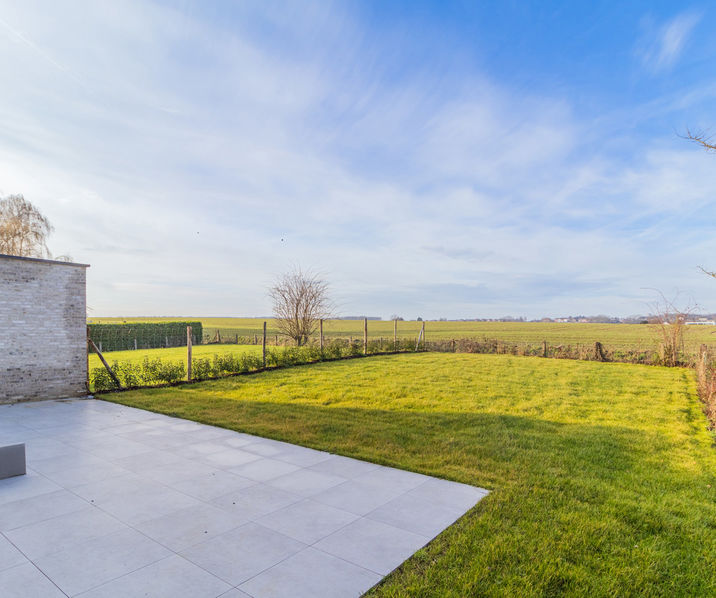 Zeer ruime nieuwbouw driegevel woning (263mē bebouwde oppervlakte) met in totaal 5/6 slaapkamers en 1/2 bureau(s), op een mooi perceel van 4a 33ca, gelegen in een kleine residentiële wijk met lokaal verkeer, en langs de tuinzijde zicht over de velden. De woning is opgedeeld als volgt: