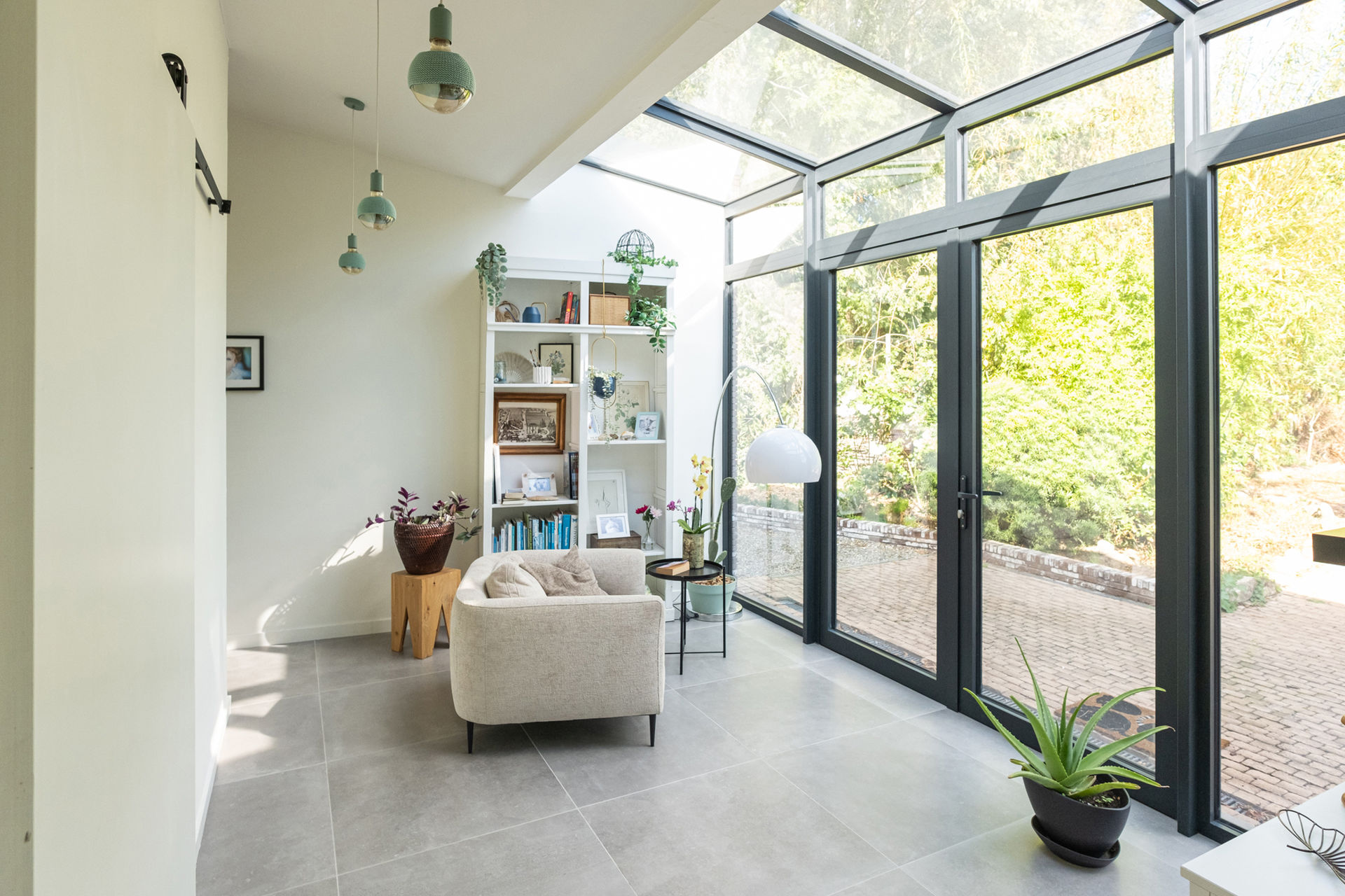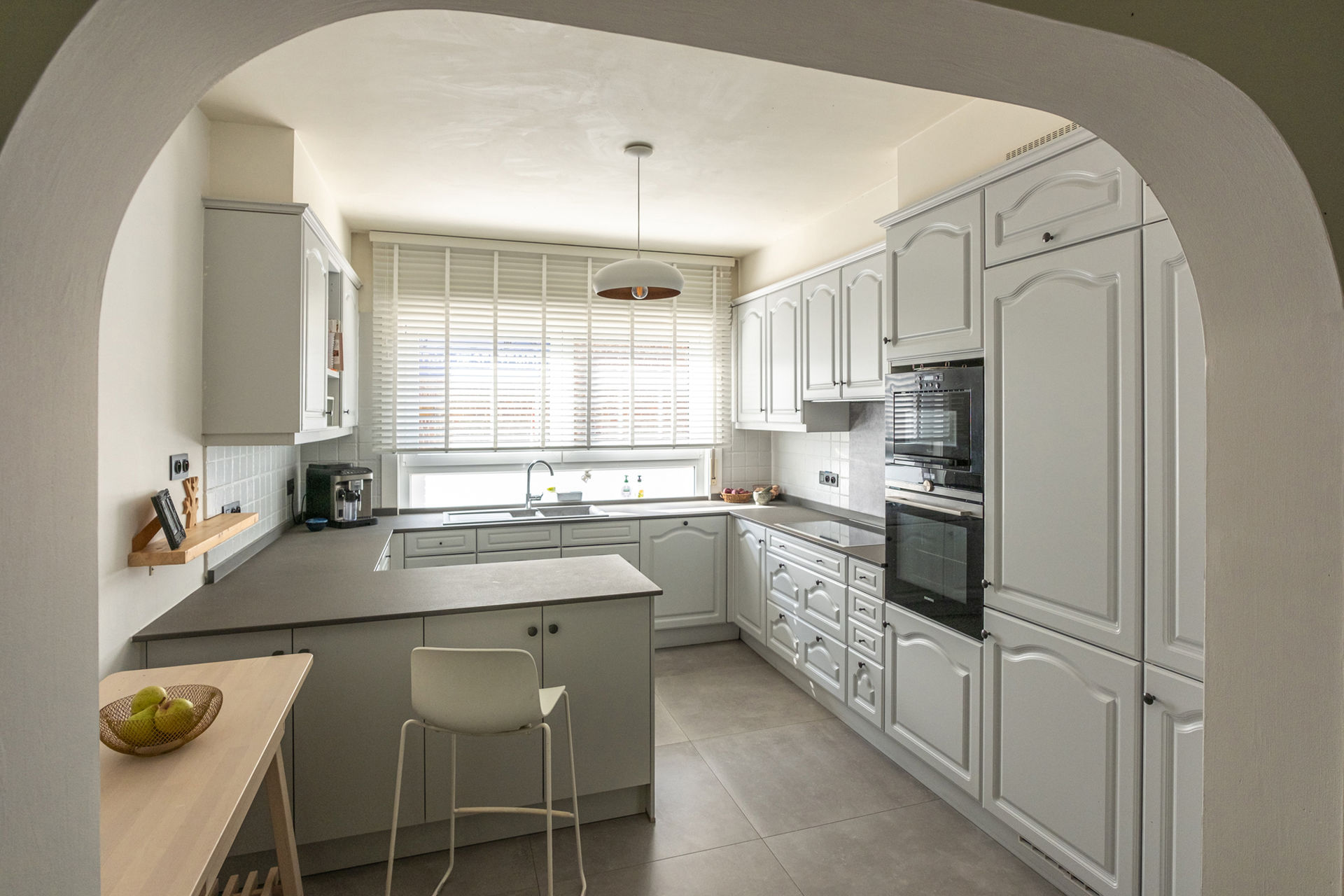 De woning verwelkomt je via een aangename inkomhal met vestiaire en berging, gevolgd door een volledig ingerichte keuken, een gezellige eetplaats en een lichtrijke leefruimte met aansluitende orangerie. Het nieuwbouwgedeelte omvat een zeer ruime polyvalente ruimte met aparte ingang – ideaal als atelier, bureau, praktijkruimte, kangoeroewoning of zelfs voor een Airbnb-concept.