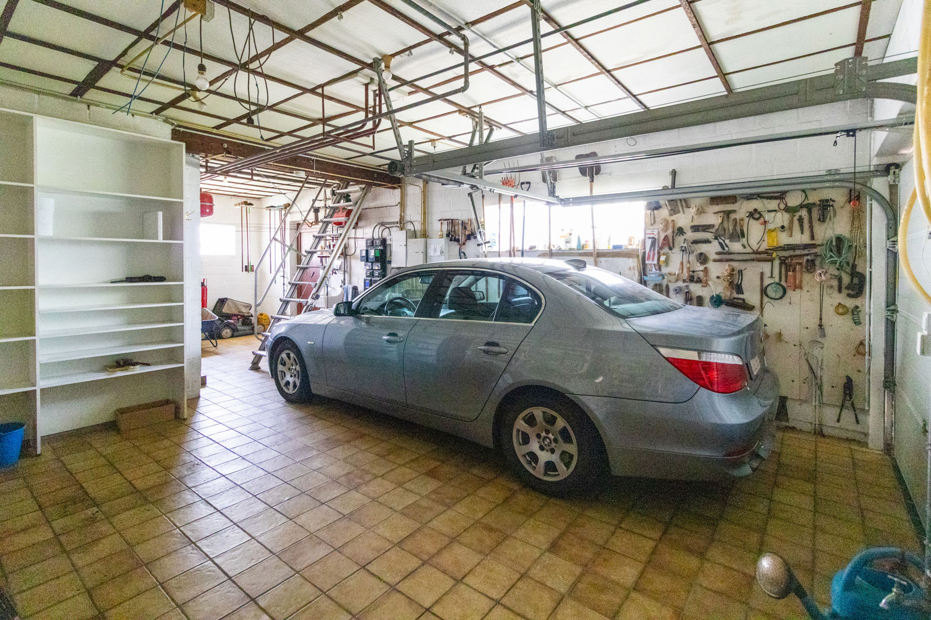 Verder is er een dubbele garage (29 m²) met aansluitend een praktische was- en bergplaats (13 m²). Vanuit de garage leidt een vaste trap naar de zolder, wat de verbouwing bijzonder eenvoudig maakt.