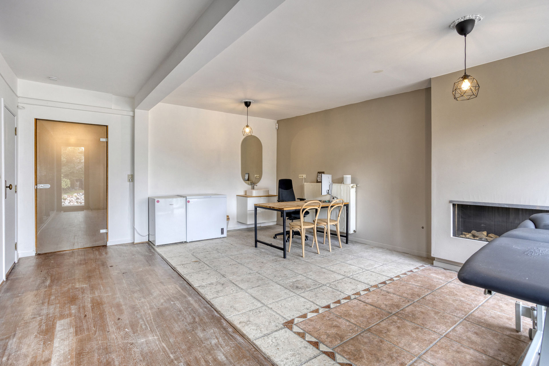 De commerciële ruimte combineert een open winkelgedeelte met een kitchenette, meerdere afzonderlijke praktijk- of kantoorruimtes, een wasruimte en praktische kelders. Achteraan geniet u van een charmante tuin met terras.