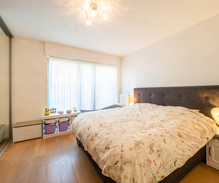 Appartement van 83 mē in uitstekende staat, gelegen op het gelijkvloers van een mede-eigendom uit 2012, dichtbij winkels en openbaar vervoer.
