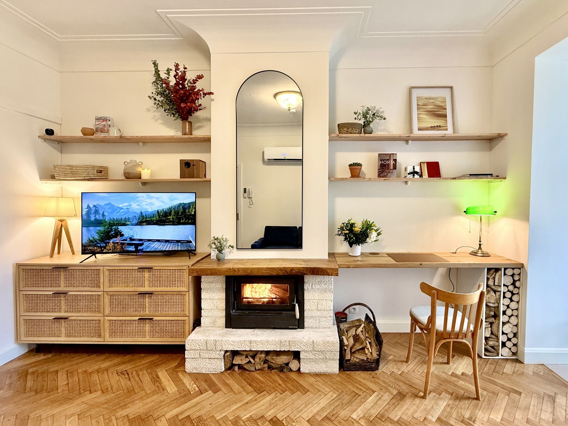Dit prachtige 1-slaapkamer appartement, volledig gerenoveerd in Art Deco / hedendaagse stijl, biedt moderne en verfijnde luxe. Het interieurdesign en de op maat gemaakte meubels zijn ontworpen door een architect en vervaardigd door ambachtslieden, wat zorgt voor een verfijnde esthetiek en optimaal comfort.