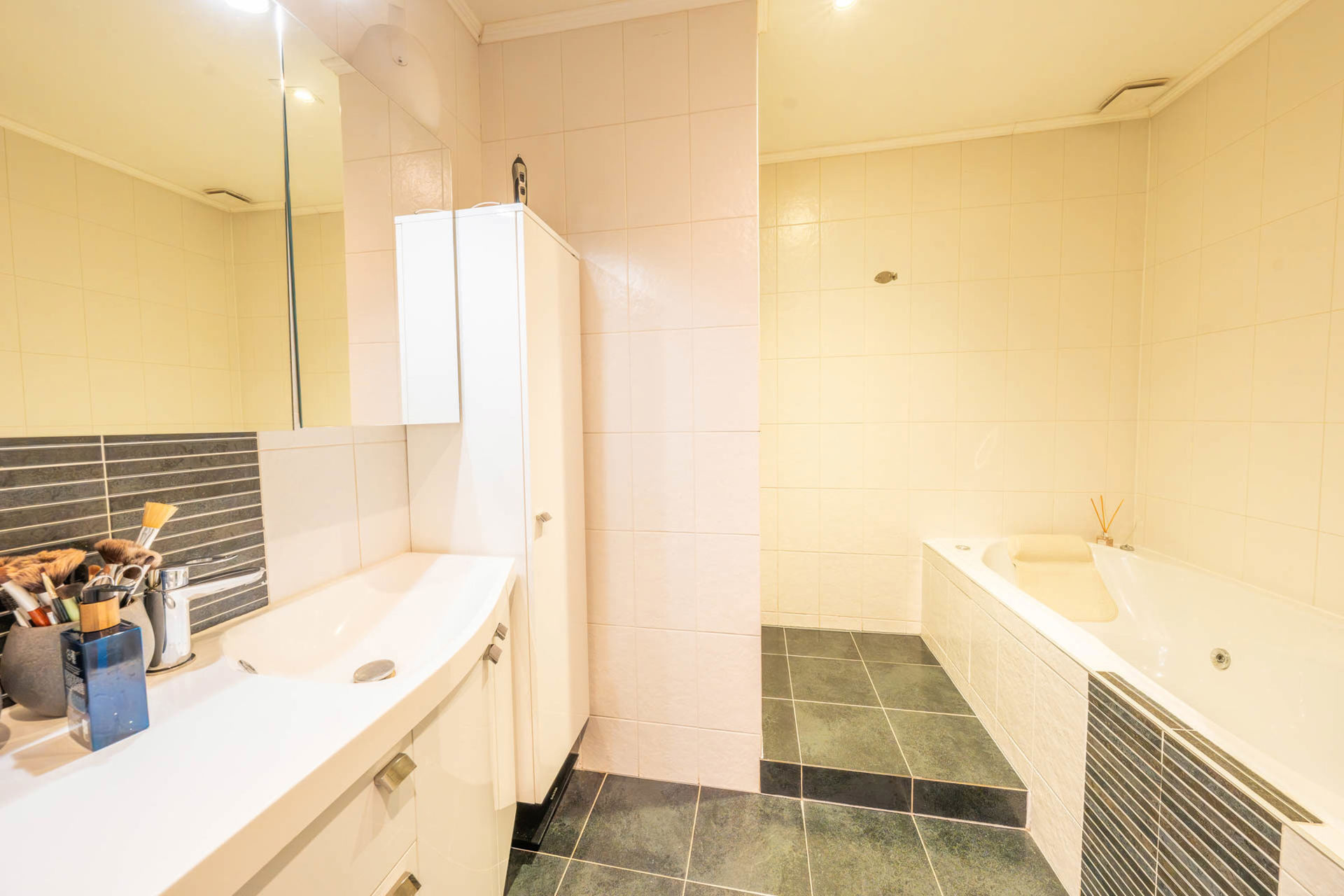 Badkamer (dubbele wastafel, jacuzzi bad, douche, WC: 5 m²)