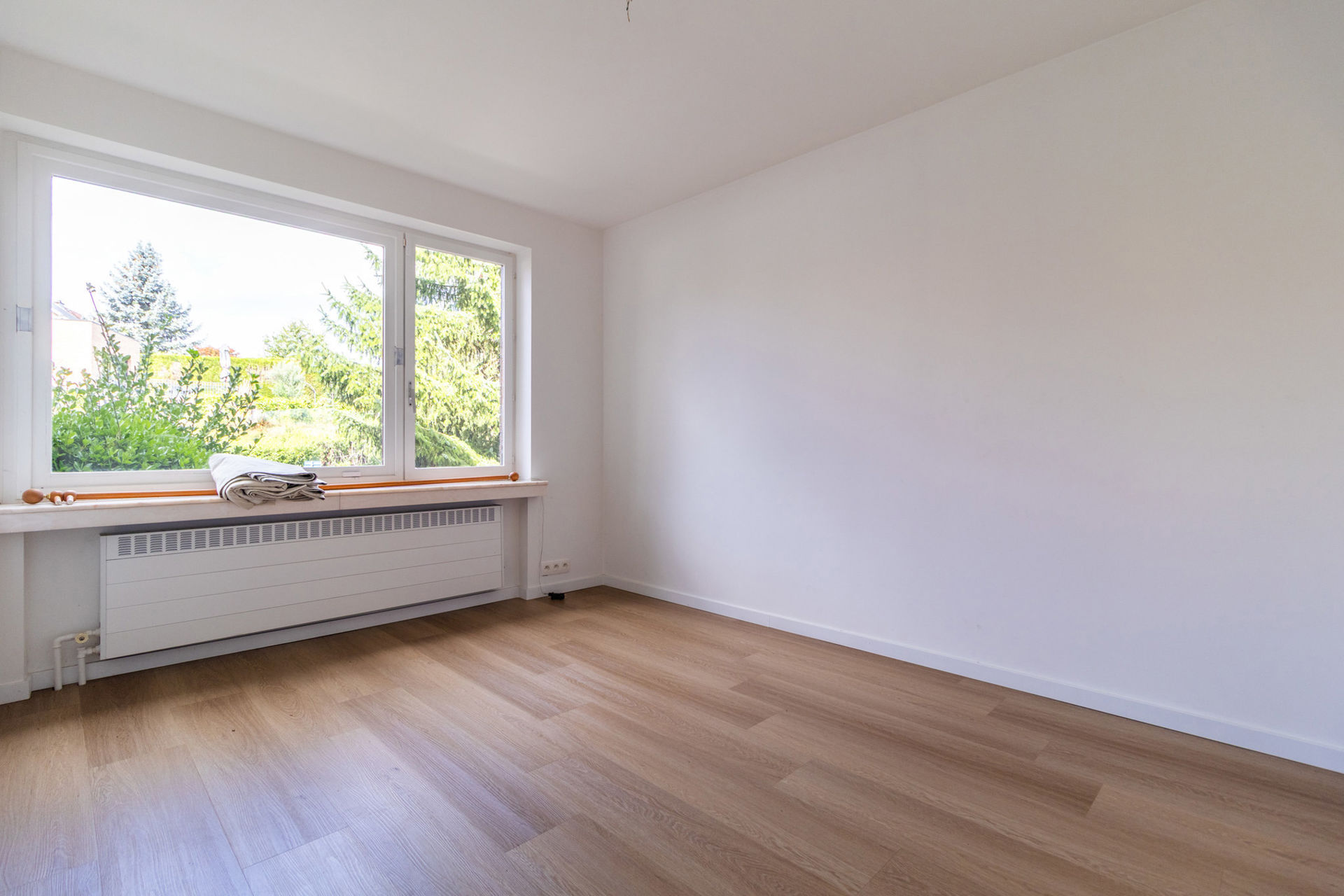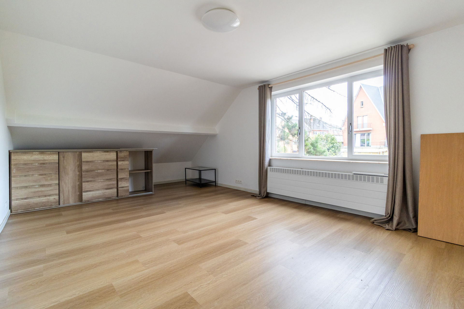 Op het gelijkvloers: een grote garage geschikt voor 2 wagens (37m²), verschillende kelders (16-5,5-6m²) die dienst doen als CV-lokaal, berging & wasplaats. Voor de garage is er nog een extra staanplaats voor 1 wagen. Op de 1ste verdieping: een inkomhal, een mooie en ruime living (27m²) met open haard en aansluitend een overdekt terras, een open volledig ingerichte keuken (8,5m²) met aansluitend een open eetplaats (12m²), een apart WC-lokaal, 2 ruime slaapkamers (13,5-11,5m²) en een badkamer (bad en wastafel). Vanuit de living heeft u toegang tot de tuin die de nodige privacy geeft door het kleine bosje (eigendom gemeente) Op de 2de verdieping (deels onder de dakhelling): nog 2 mooie slaapkamers (24-25 m²), een 2de badkamer (4m² inloopdouche, dubbele wastafel, wc) en een zolder. Een ideale gezinswoning, op een boogscheut van Brussel