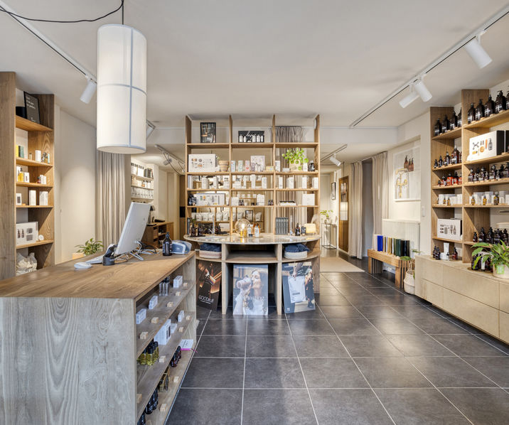 De commerciële ruimte combineert een open winkelgedeelte met een kitchenette, meerdere afzonderlijke praktijk- of kantoorruimtes, een wasruimte en praktische kelders. Achteraan geniet u van een charmante tuin met terras.