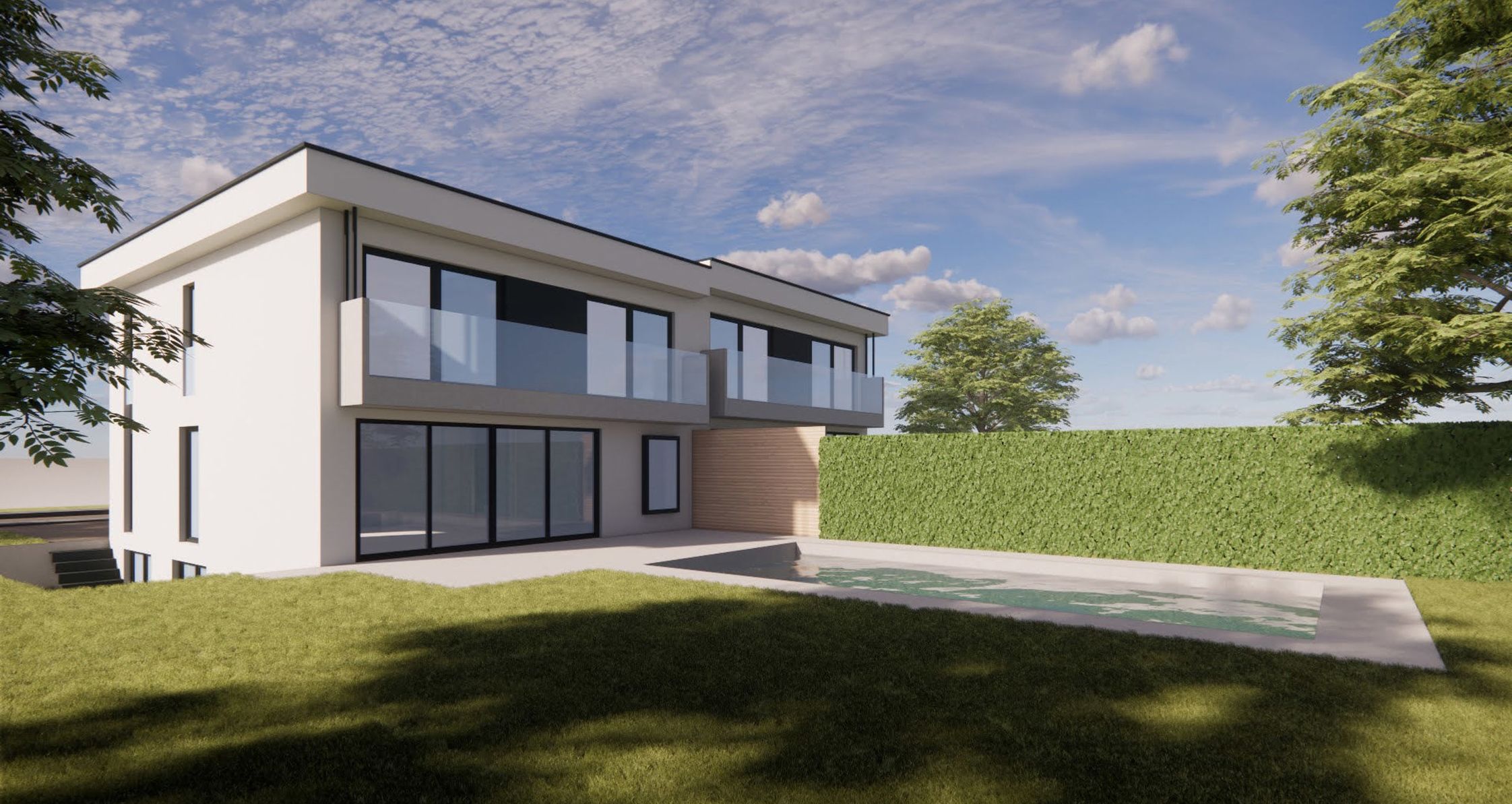 Op de verdieping zorgen drie bijkomende slaapkamers, twee luxueuze badkamers en een ruime nachthal voor een harmonieus en evenwichtig leefklimaat. Deze woning is standaard uitgerust met vloerverwarming op alle niveaus, inclusief de kelder, en maakt gebruik van een energiezuinige warmtepomp, zonnepanelen en een regenwaterput, waardoor ze niet alleen comfortabel maar ook toekomstgericht is. De afwerking gebeurt met een strak bepleisterde look en kan naar wens uitgebreid worden met schilderwerken en verlichting, volledig op maat van de koper. Wie op zoek is naar extra luxe, kan opteren voor de aanleg van een privézwembad in de tuin.