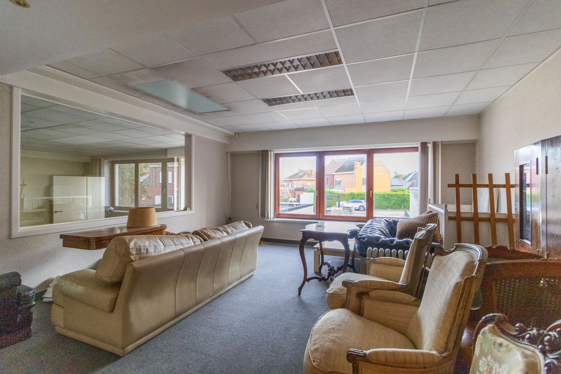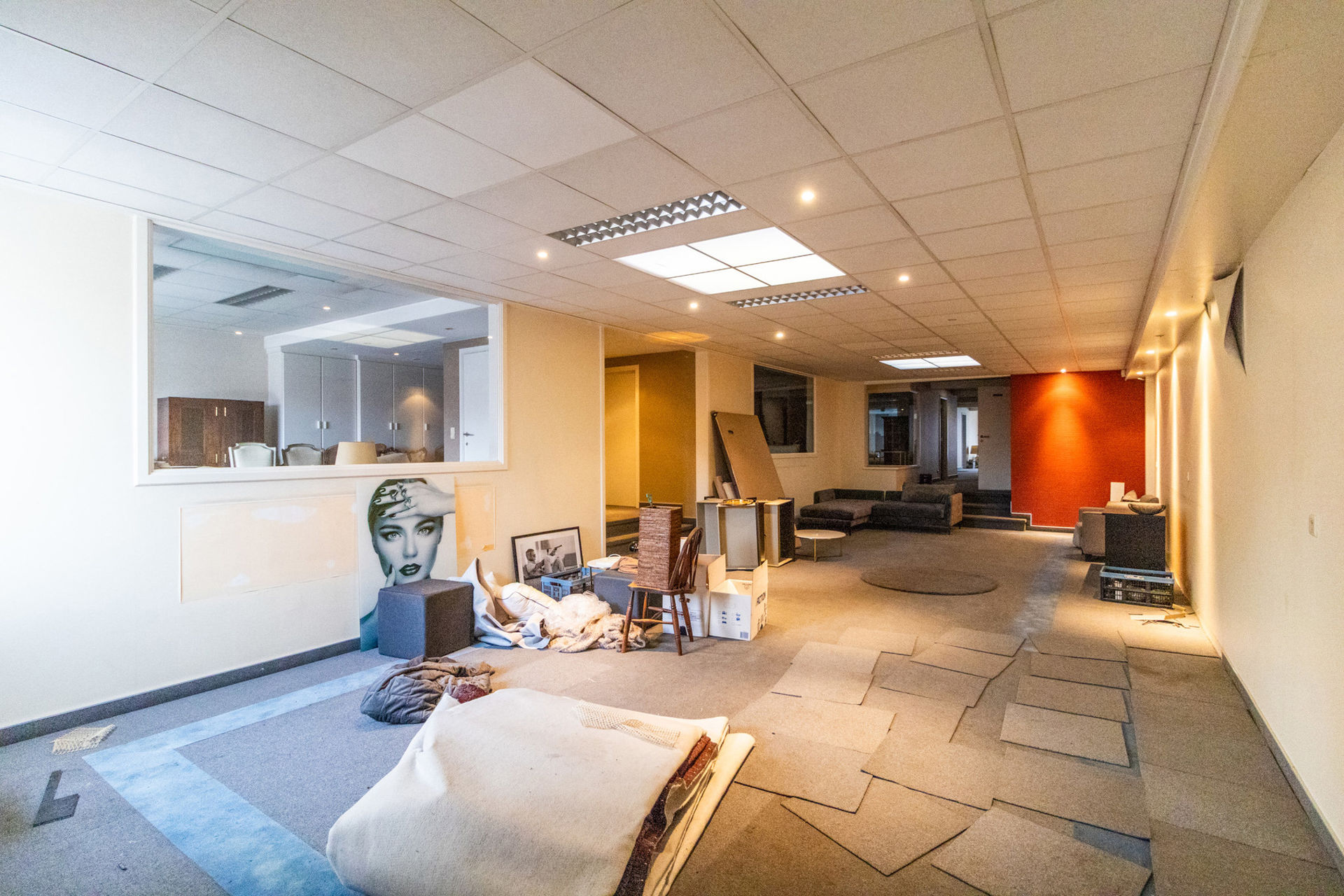 Het pand omvat een ruime parking aan de voorzijde, een atelier/werkplaats van ca. 562 m², perfect voor productie of ambachtelijke activiteiten, en een aantrekkelijke showroom met aansluitende burelen die een professioneel onthaal garanderen. Verder zijn er een ingerichte kitchenette, sanitair voor dames en heren, een printerlokaal en een ruime stockagezone van ca. 490 m².