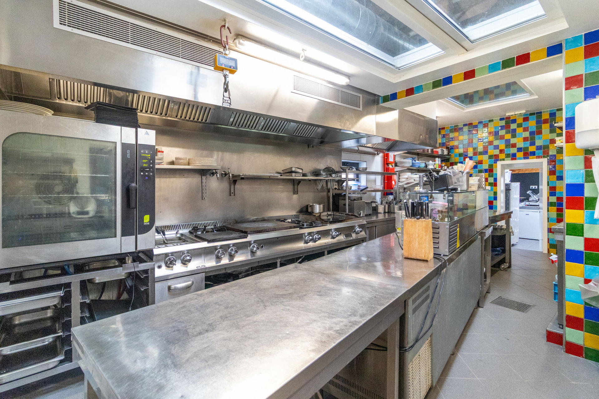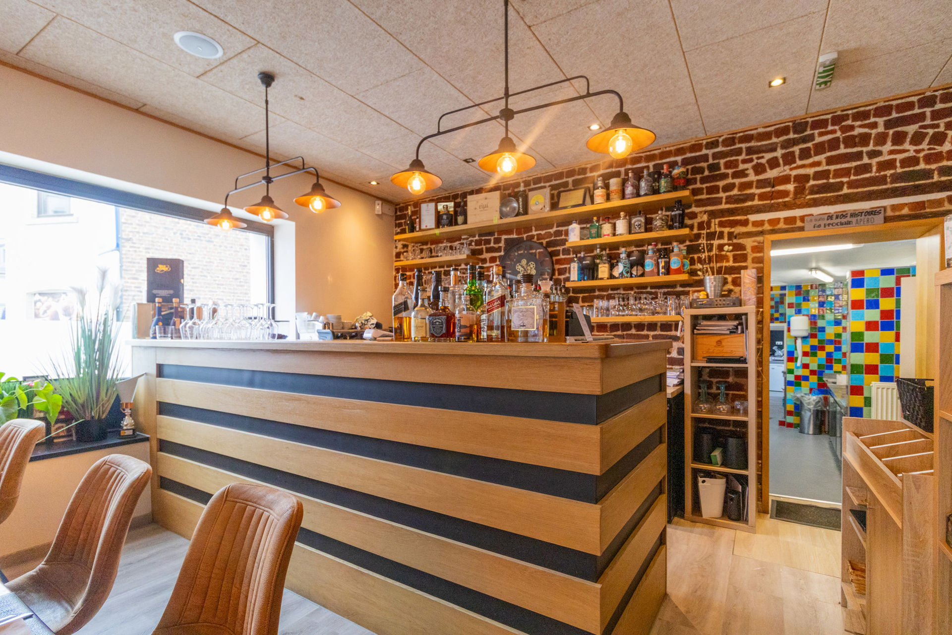 De handelsruimte van ongeveer 167 m² straalt charme en professionaliteit uit, met grote etalages die maximale zichtbaarheid garanderen, een stijlvolle bar, een volledig uitgeruste keuken met koelruimte, en nette sanitaire voorzieningen. In de kelder bevindt zich extra opslagruimte, wat bijdraagt aan het praktische gebruik van de zaak. Zowel een privéparking voor twee wagens als een klantenparking staan ter beschikking.