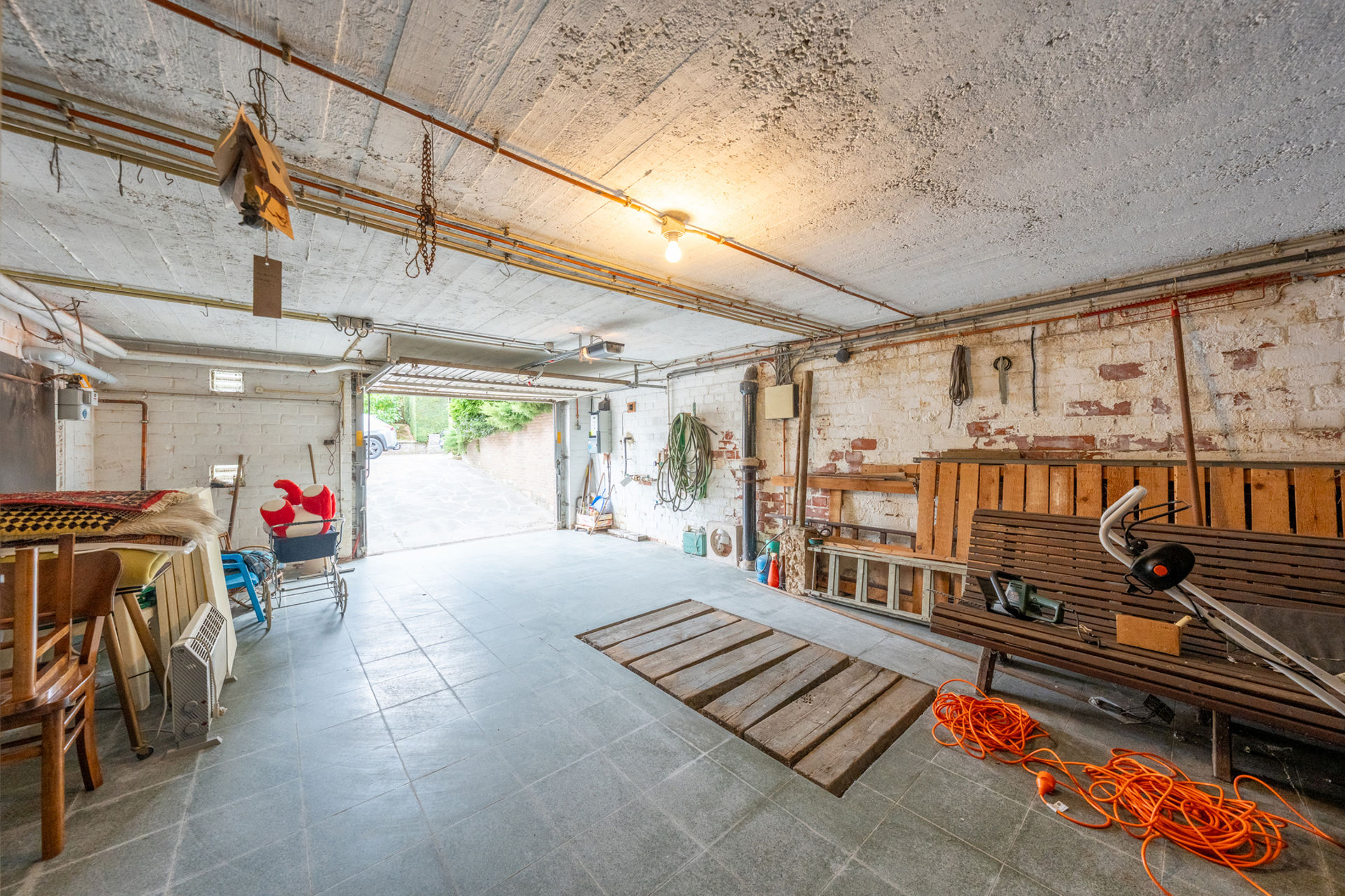 - Kelder : grote garage voor twee wagens (45 m²), wasruimte (10 m²) en drie kelders (15, 10 en 7 m²).
