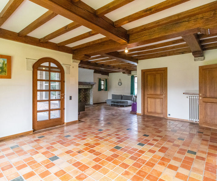 Op het gelijkvloers verwelkomt een royale inkomhal u in de woning. Verder vindt u een bureau ? ideaal voor thuiswerk ? en een ruime, lichtrijke living van maar liefst 50 m² met een prachtige haard die zorgt voor een warme sfeer. De aangename leefkeuken met eetplaats is volledig ingericht en biedt directe toegang tot het grote terras en de mooie tuin, perfect voor gezellige familie-avonden. Daarnaast is er een apart toilet, een praktische wasplaats, een berging en een dubbele garage met elektrische sectionaalpoorten.