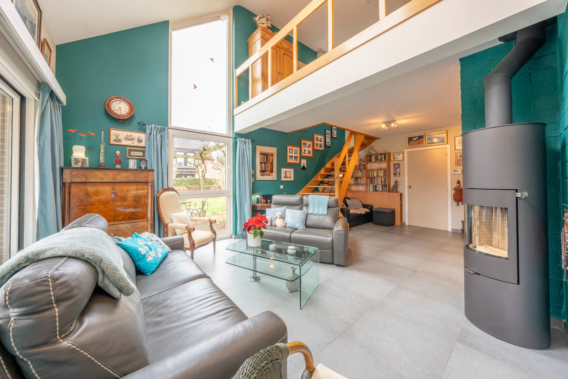 Woonkamer met houtkachel (28 m²)
